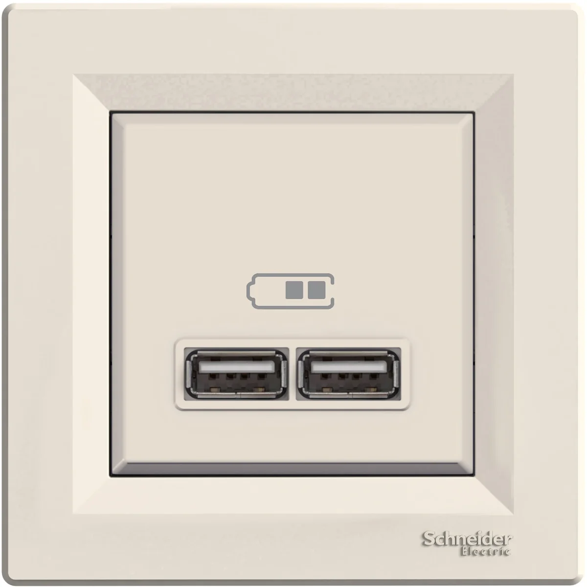 ASFORA USB-Ladesteckdose 2,1 A mit cremefarbenem Rahmen EPH2700223