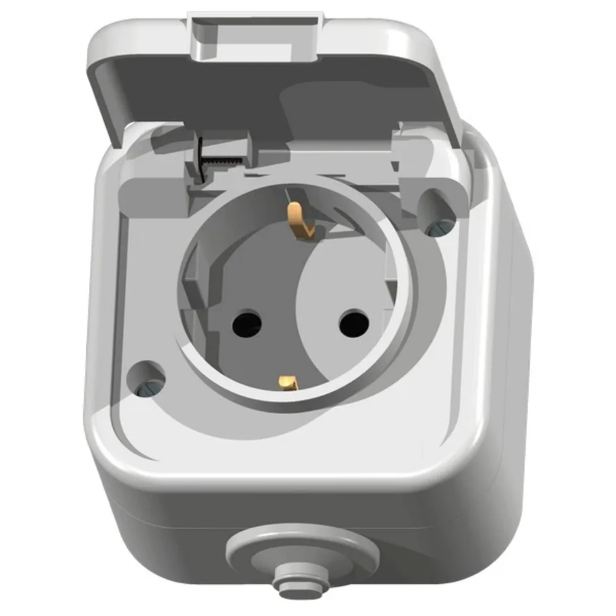 Hermetische Wandsteckdose aus der Serie Delfina von Ospel. Die Produktkatalognummer lautet GNH-1DS/00/W.