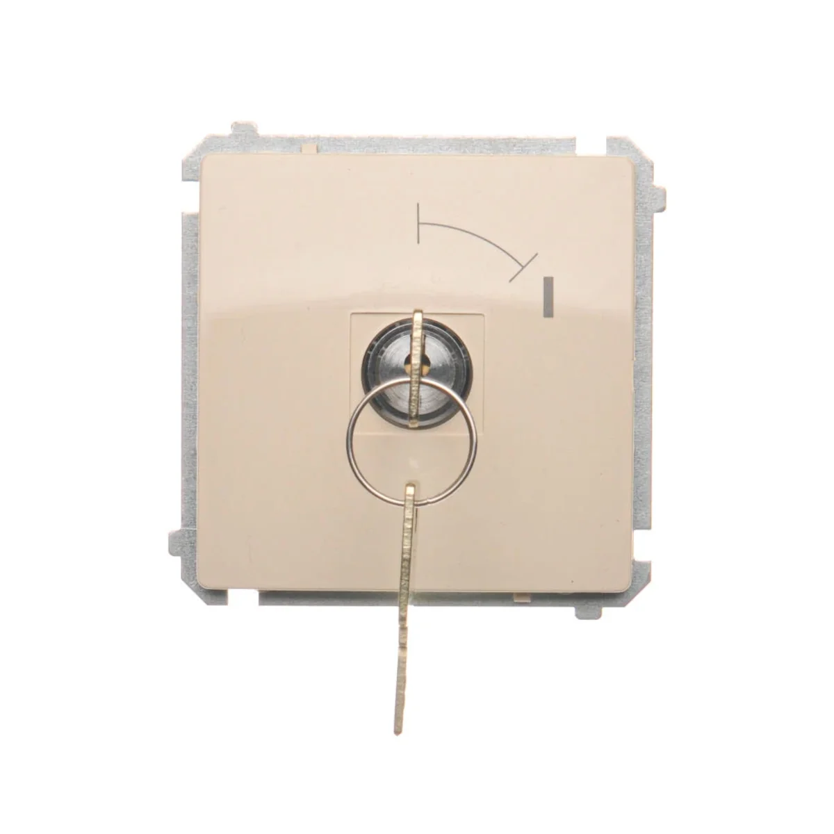 Moment-Schlüsselschalter (Druckknopf) aus der Simon Basic-Serie, vom Hersteller Contact Simon. Produkt Katalognummer: BMP1K.01/12. Beige Farbe.