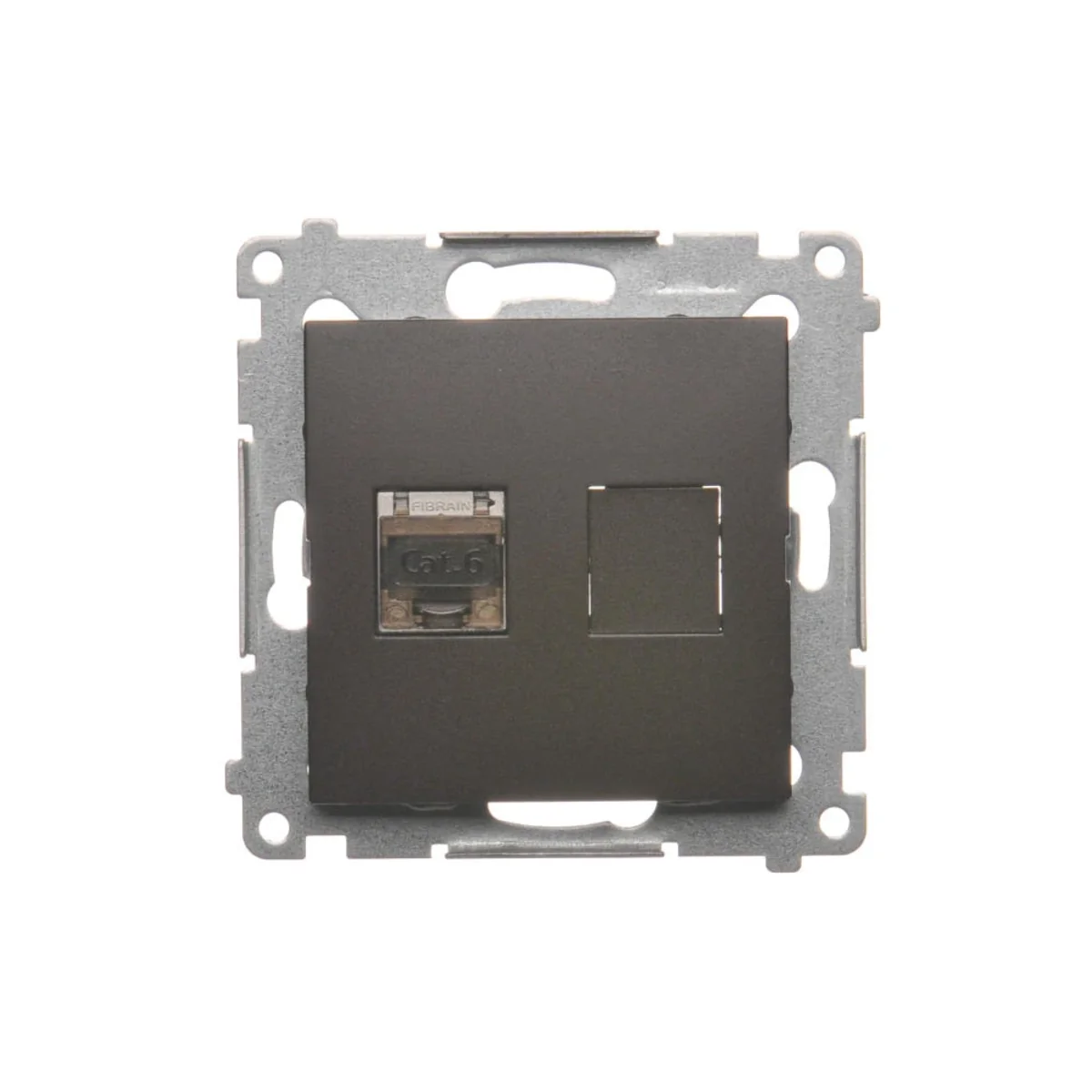 Computersteckdose einfach geschirmt RJ45, Kategorie 6, mit Staubschutzabdeckung, Serie SIMON 54. Aus Plastik hergestellt. Mit Isolations-Piercing-Crimp.