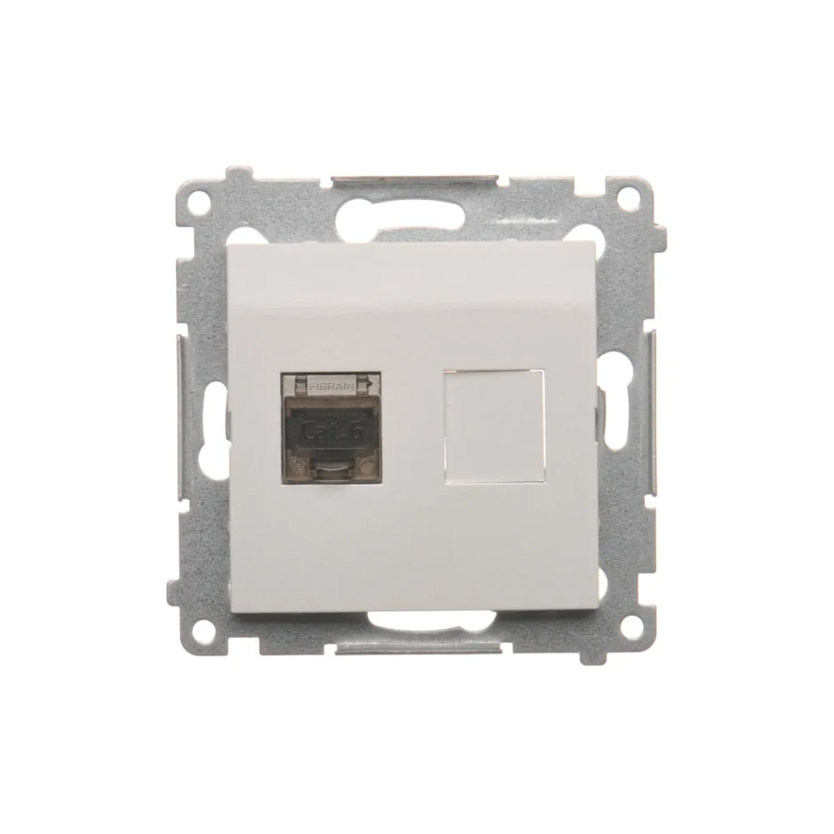 Computersteckdose einfach geschirmt RJ45, Kategorie 6, mit Staubschutzabdeckung, Serie SIMON 54. Aus Plastik hergestellt. Mit Isolations-Piercing-Crimp.