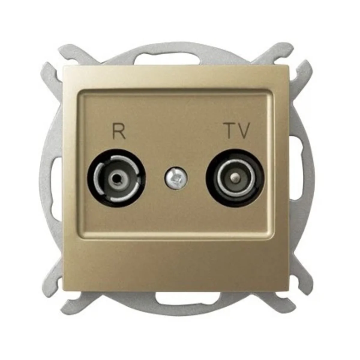 RTV-Antennenbuchse Pass-Through. Es ist für die serielle Installation konzipiert, bei der ein Kabel durch verschiedene Empfänger verläuft. Zur Ausstattung mit Rahmen.