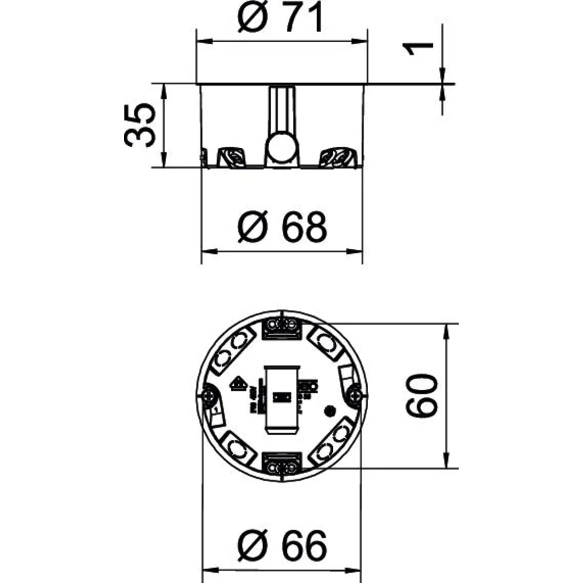 Deckenwandkasten für den Einsatz in Wänden mit einer Tiefe von mindestens 35 mm und einer Plattenstärke von 5 - 28 mm.