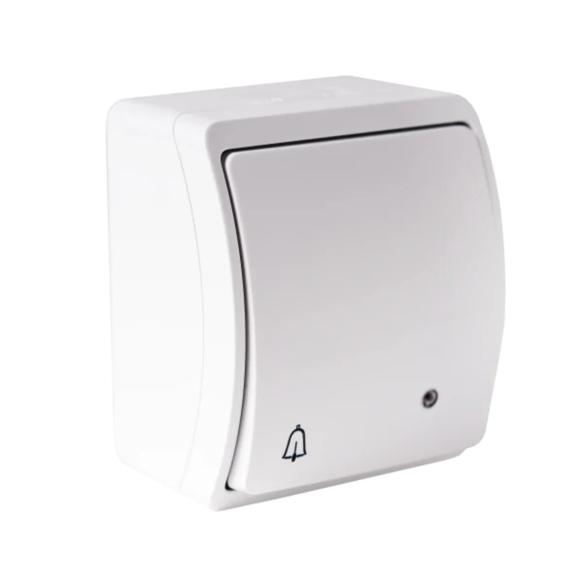 Ein beleuchteter Aufputz-Klingelschalter aus der Serie Koala des Herstellers ViPlast. Die Produktteilenummer ist 155-51.