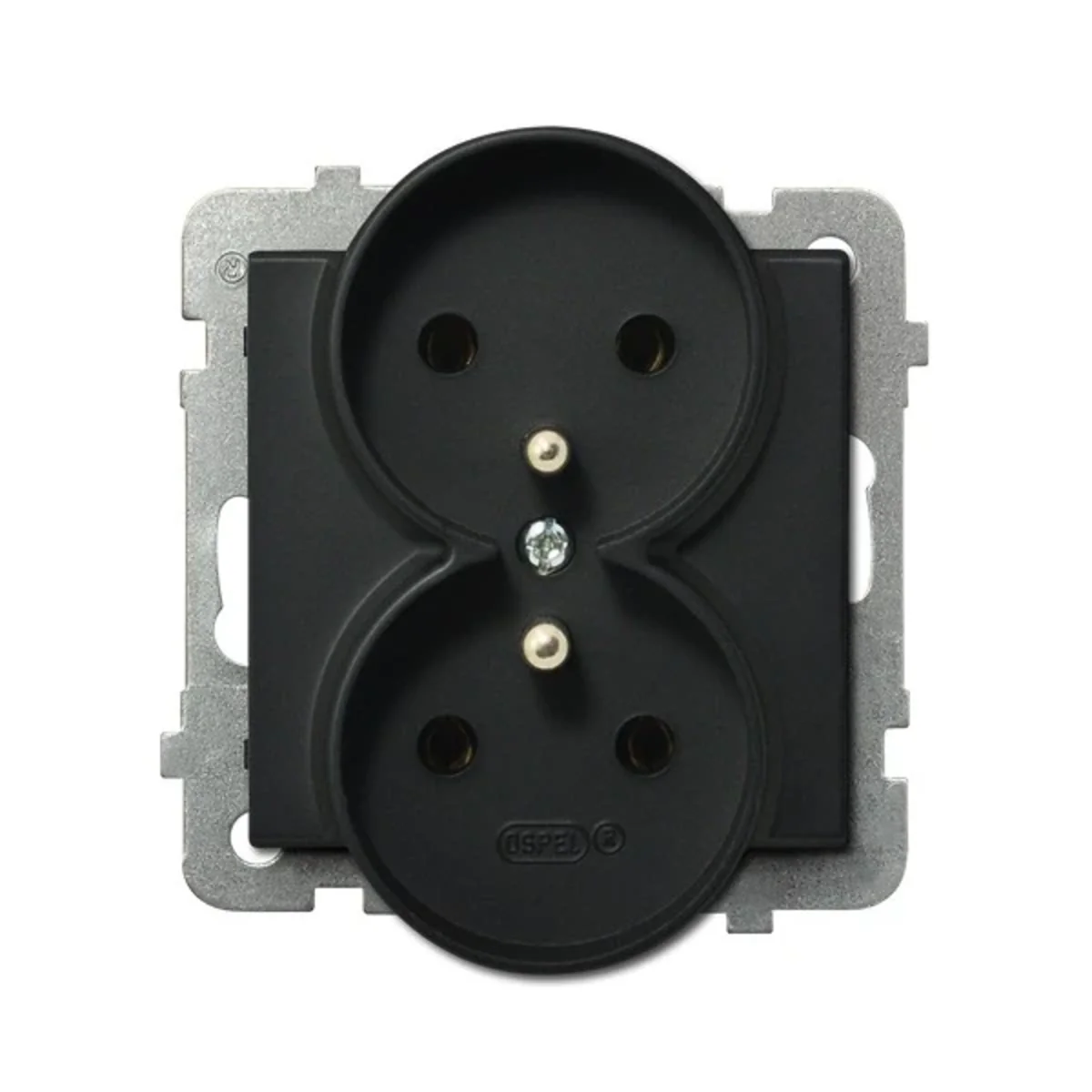 Steckdose doppelt, mit Erdung, zur Ausstattung mit einem Rahmen.