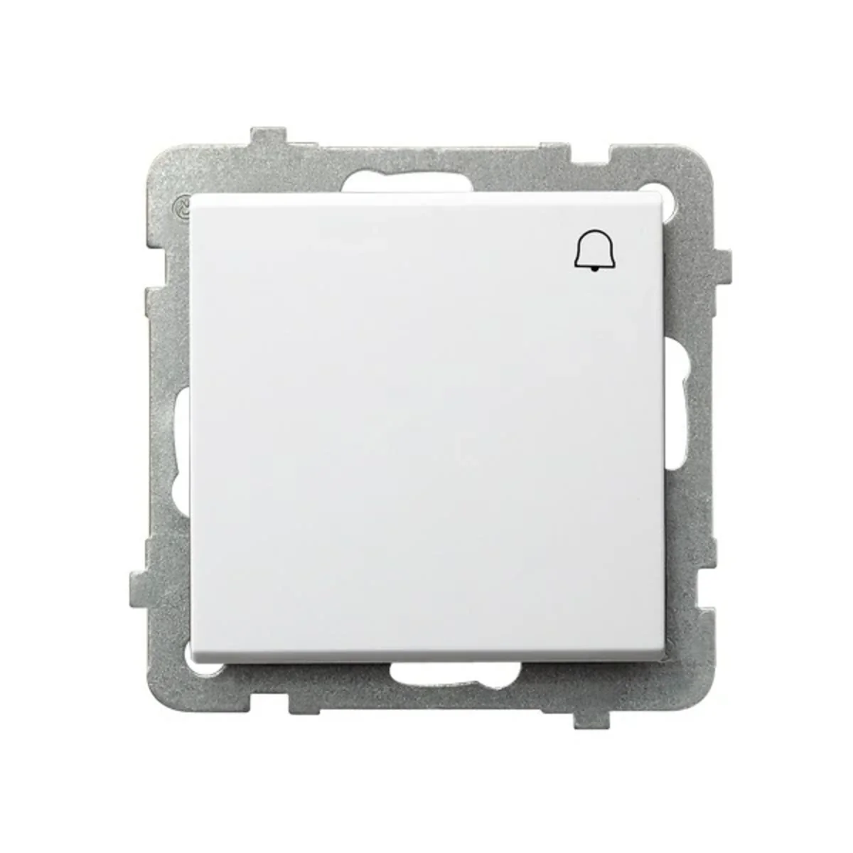 Kurzschlussschalter „Glocke“ der Sonata-Serie, vom Hersteller Ospel. Das Produkt Katalognummer ist ŁP-6R/M/00. In Weiß.