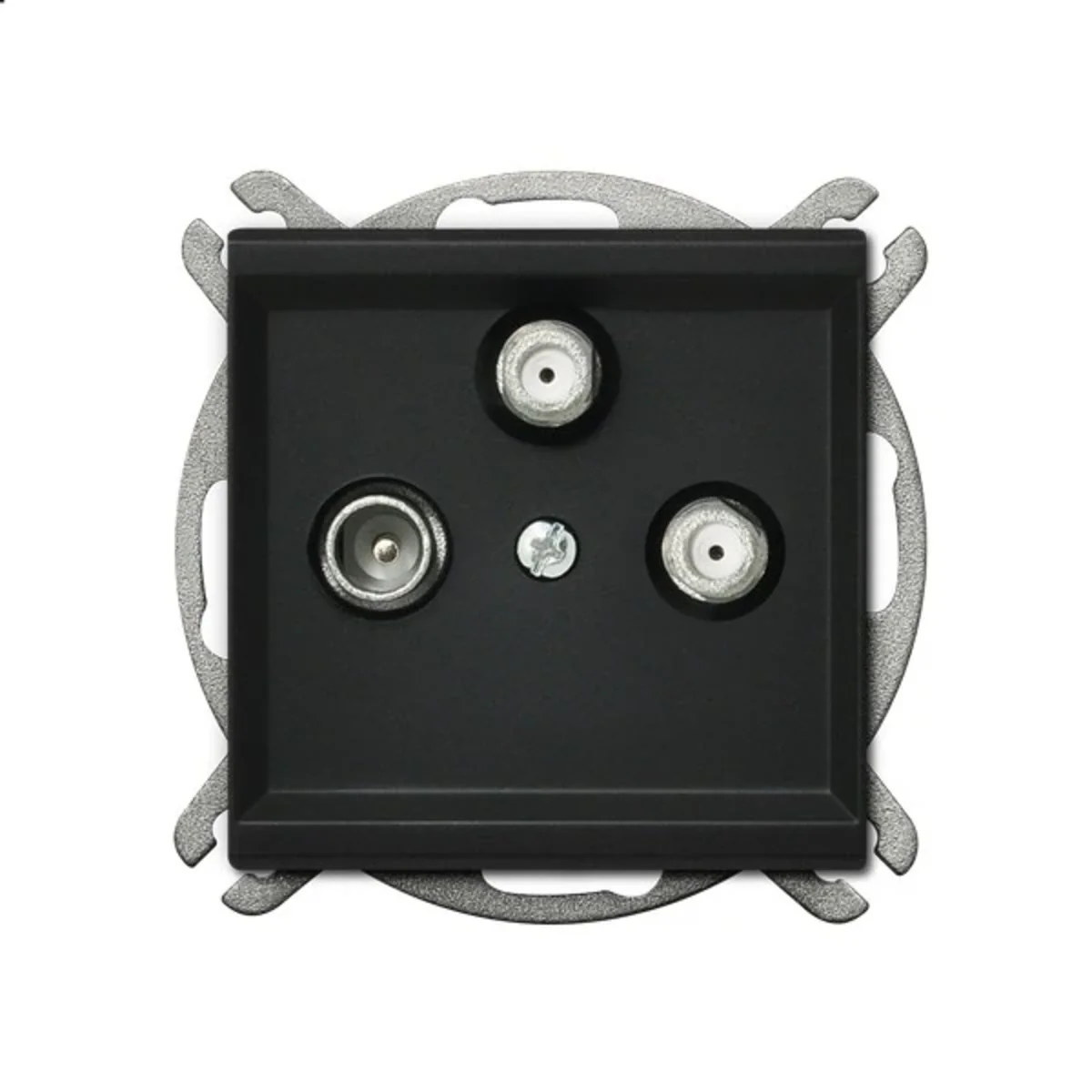 RTV-Antennensteckdose mit zwei SAT-Ausgängen. Zur Ausstattung mit einem Rahmen.