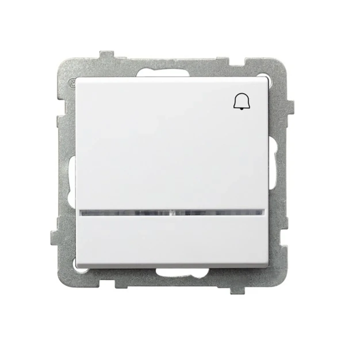 Kurzschlussschalter „Klingel“ mit Hintergrundbeleuchtung, Sonata-Serie, vom Hersteller Ospel. Produkt Katalognummer ist es ŁP-6RS/M/00. In Weiß.