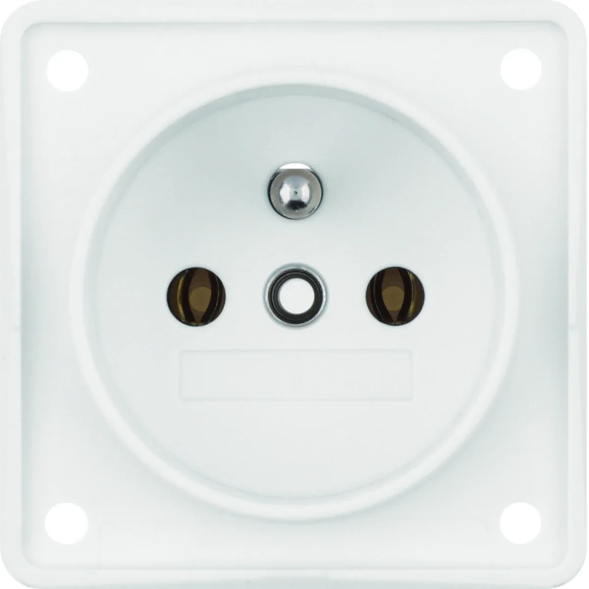 Steckdose mit Erdung, aus der Serie Berker Integro Flow, die durch ihr minimalistisches Design, die schnelle und einfache Installation eine ideale Lösung für den Einsatz in Küchenmöbeln darstellt , in der Sanitärbranche und überall dort, wo kompaktes Design und umfassende Funktionalität gefragt sind. Es zeichnet sich durch kleine Abmessungen aus und eignet sich für den Einbau in Möbel, technische Fahrzeuge, Wohnwagen und Boote. Hauptdesignlinie: Berker Integro Modulmechanismen.