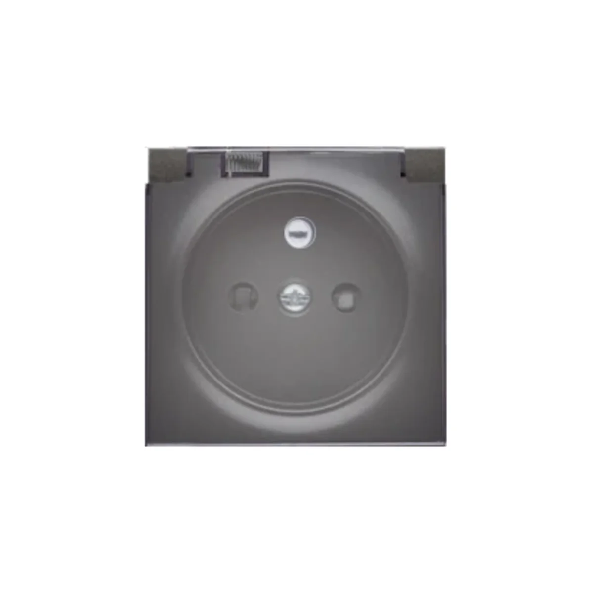 Abdeckung für Einzelsteckdosenmechanik mit Erdung (Art.-Nr. 75458-39) aus der Serie SIMON 82 DETAIL. Es verfügt über eine IP44-Abdeckung in transparenter Farbe. Der Deckel selbst ist aus Graphit.