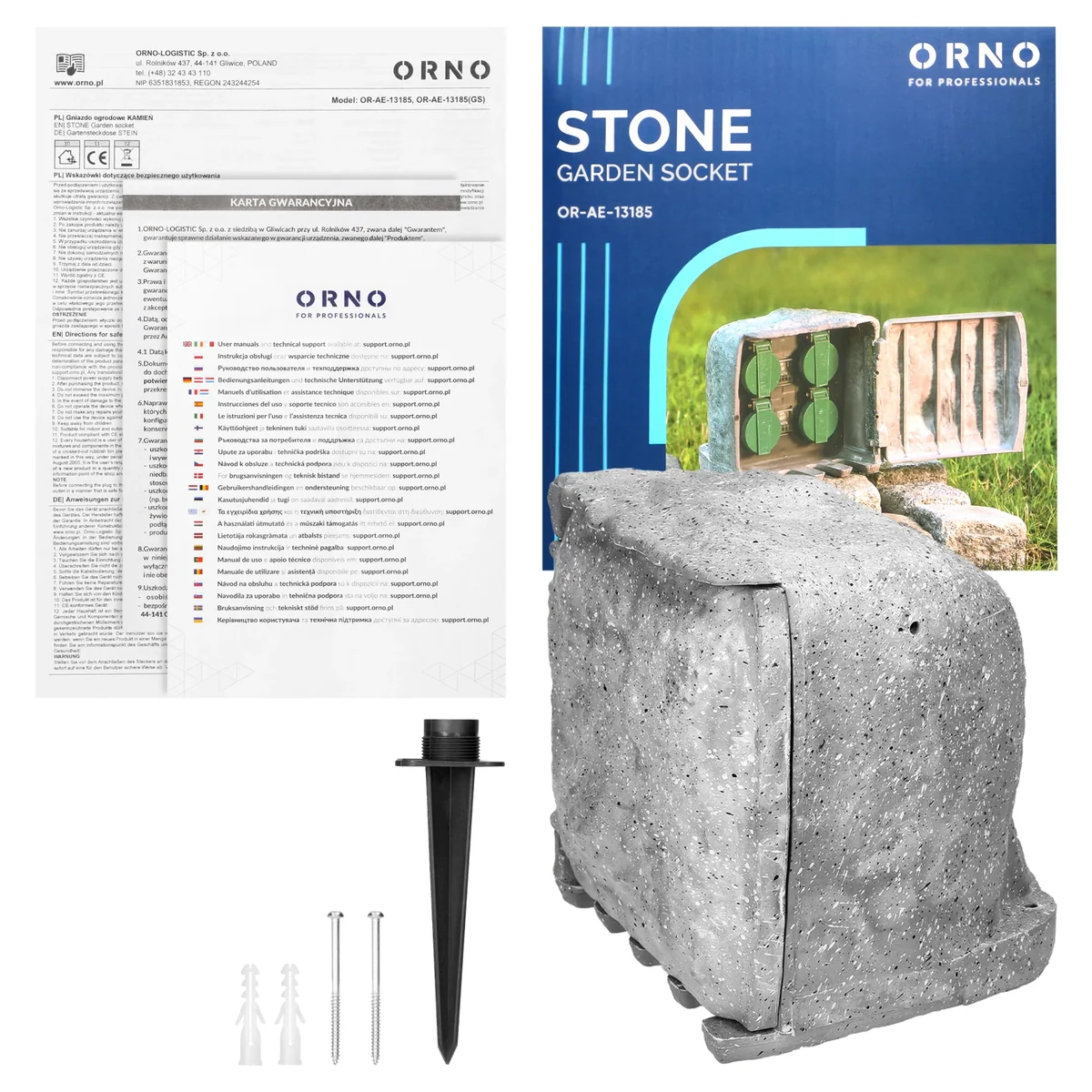 Gartensteckdosen (4x2P+Z) im steinähnlichen Kunststoffgehäuse. Dank dieser Lösung sind die Steckdosen vor Witterungseinflüssen geschützt und lassen sich problemlos in die Gartenlandschaft integrieren. Es verfügt über ein Gummikabel mit einer Länge von 3 m und 2 Betriebsmodi – manuell (max. 3680 W) oder Dämmerungssensorsteuerung (max. 1100 W).