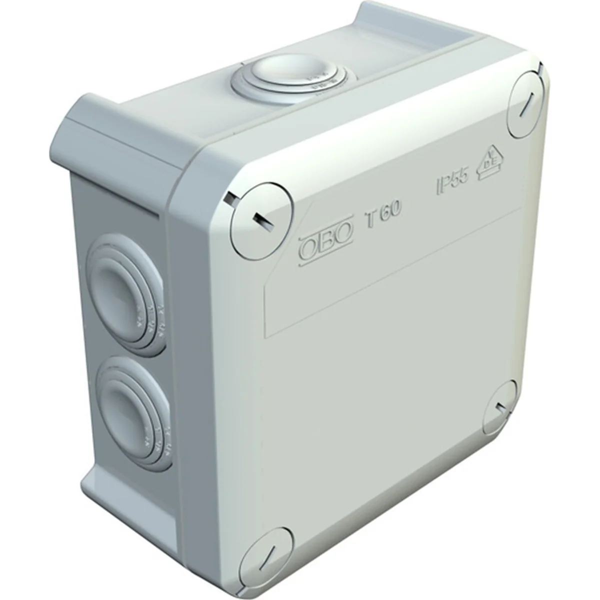 Anschlussdosen bestehen aus Polypropylen, einem Thermoplast, während 7 x M25 flexible Kabelverschraubungen aus Ethylenvinylacetat bestehen ( EVA). Dadurch können die Kabel durch direktes Durchstechen der flexiblen Verschraubungen mit dem Kabel installiert werden, oder die flexiblen Verschraubungen können mit einem Messer aufgeschnitten werden, um eine Öffnung für die Einführung von Kabeln oder Rohren zu schaffen. Alternativ können anstelle flexibler Verschraubungen auch Kabelverschraubungen eingebaut werden, die dann von innen mit einer Kontermutter gesichert werden. Die Anschlussdosen können mit Blechschrauben 3,5 x 9,5 auf Montageplatten montiert werden. Lichte Innenmaße: 100 x 100 x 48 mm. Deckel mit Beschreibungsfeld, versiegelt.