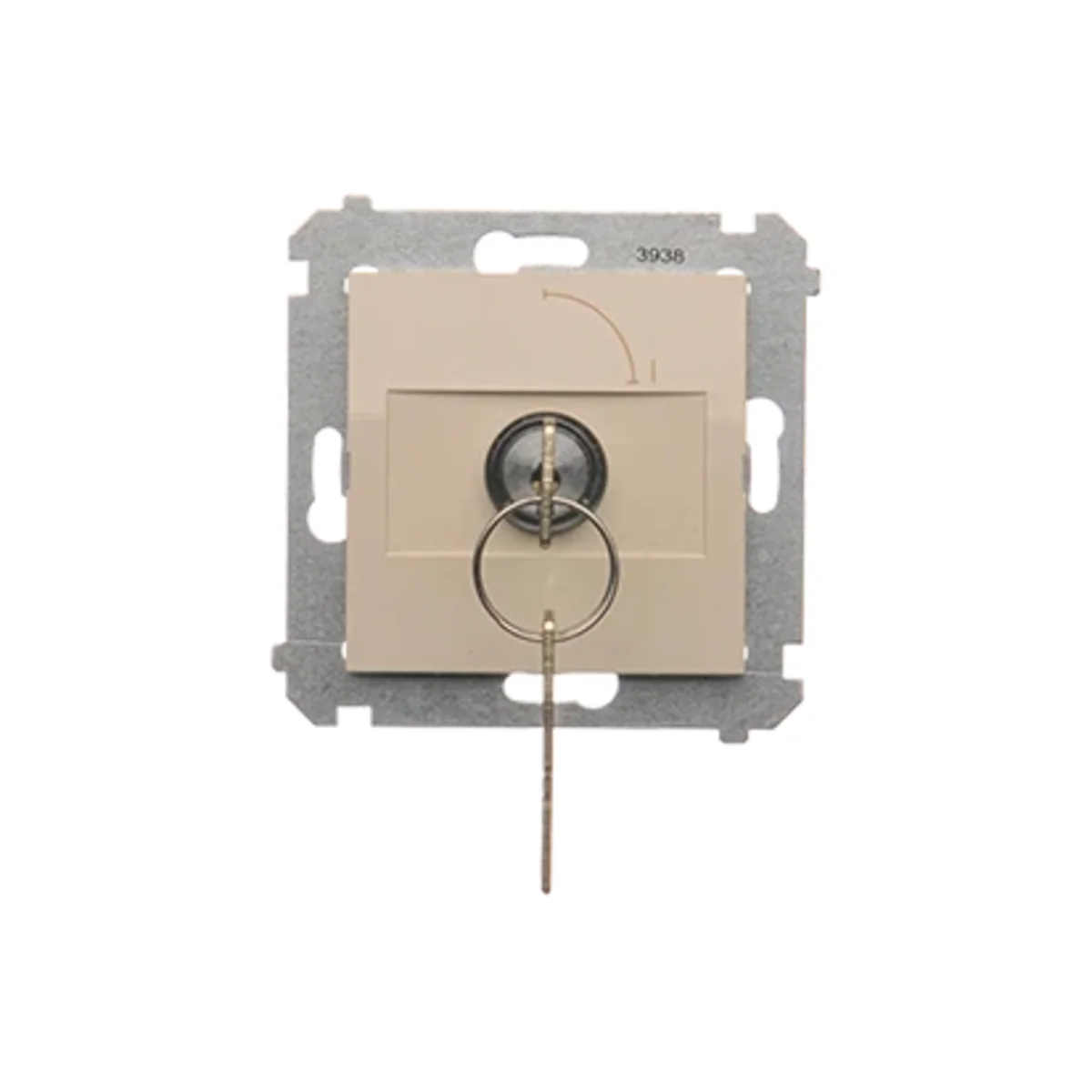 Einpoliger Schalter (bistabil) aus der Serie Simon 54. Schlüsselbetätigt, 2-Positionen „0-I“.  ;Die Möglichkeit, den Schlüssel in jeder Position zu entfernen, 2 Stück Schlüsselów im Lieferumfang des Produkts enthalten.