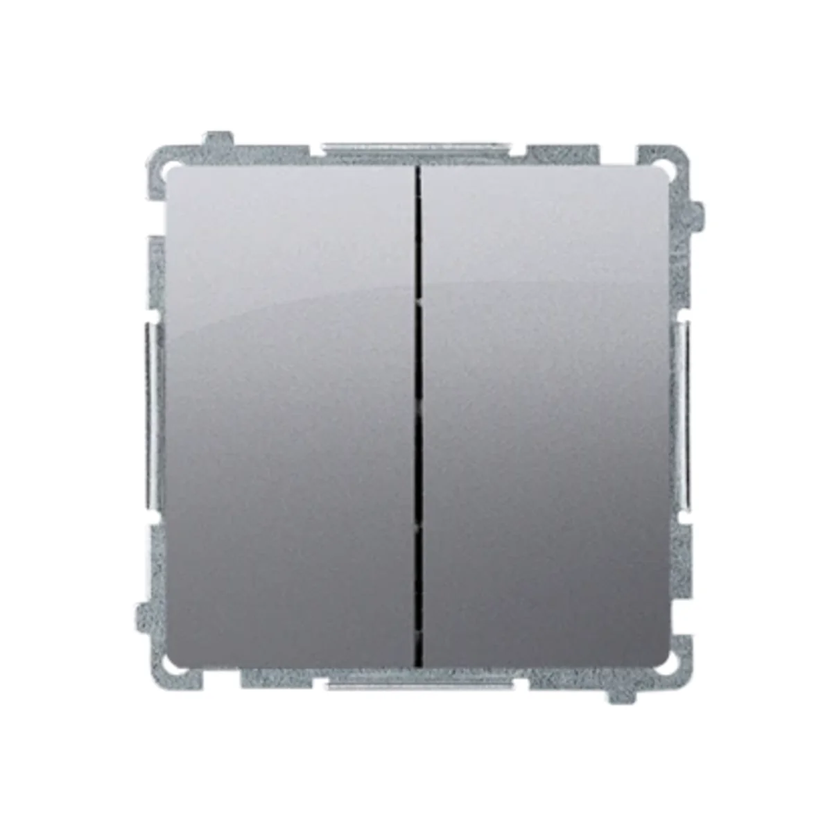 Doppelschließtaster aus der Simon Basic-Serie, vom Hersteller Contact Simon. Die Produktkatalognummer lautet < strong>BMP2.01/21. Inox-Farbe, metallisch.