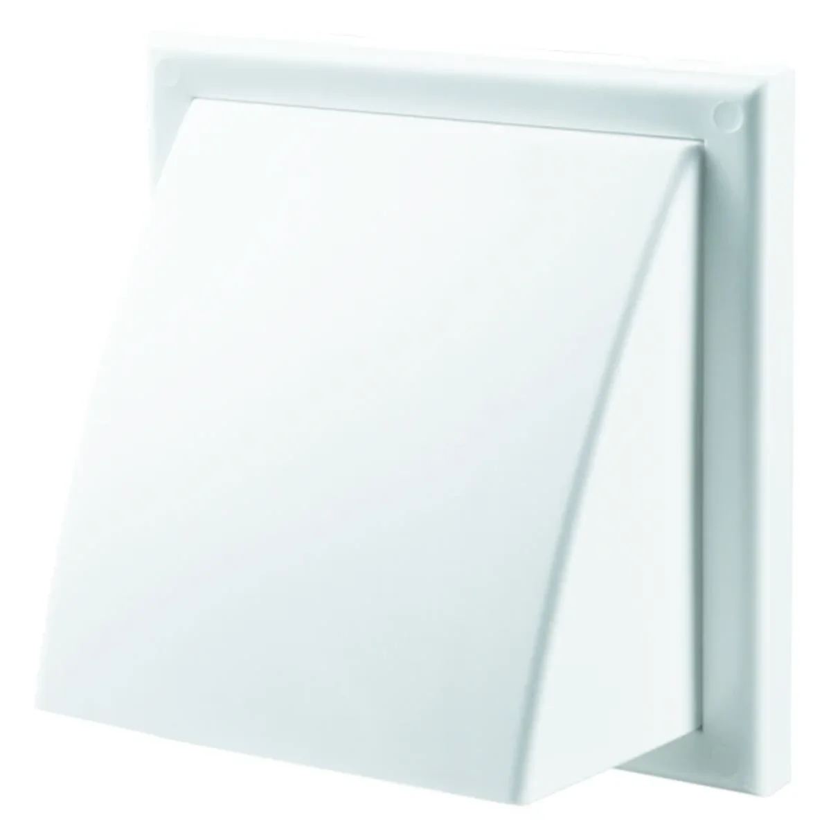 Wandauslass 154x154mm mit Rückschlagventil, Haube und Flansch fi 100mm weiß WPMV102VKWH