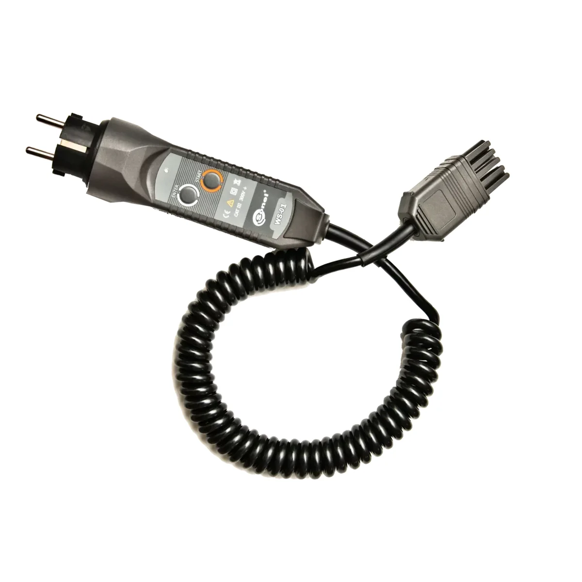 WS-01-Adapter zur Auslösung der Messung mit einem Messkabel. Es verfügt über einen Uni-Schuko-Stecker. Das bedeutet, dass der Stecker in jede Art von Steckdose passt (sowohl Stift- als auch Schuko-Steckdose). Funktioniert bei Spannungen bis zu 300 V. Es bestand aus schwarzem Kunststoff. Standardanwendung für das Messgerät MPI-505. Messkategorie: CAT III.
