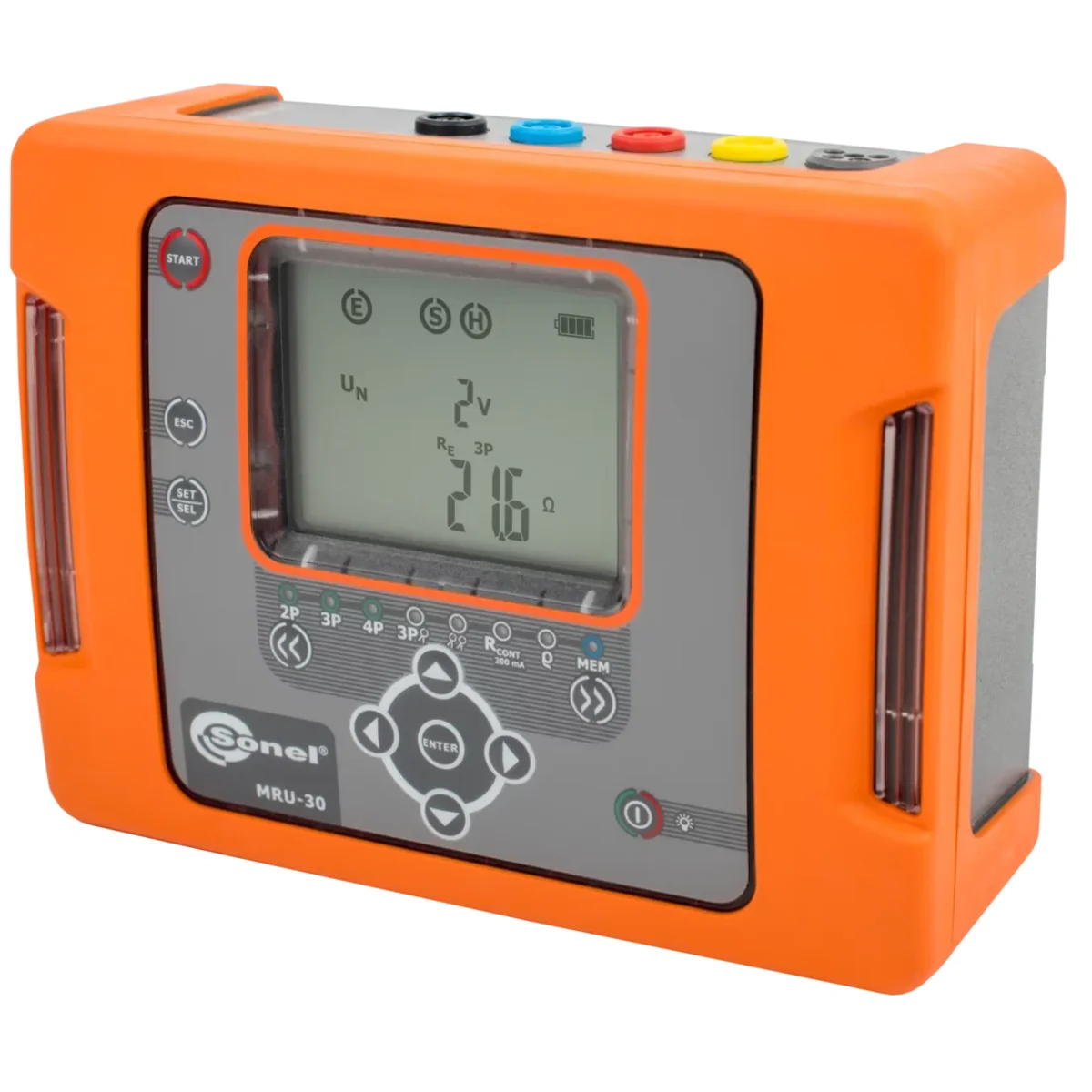 Das Messgerät MRU-30 ist für Messungen sowohl von einzelnen, als auch mehreren Erdungen mit Hilfselektroden und/oder Erdungszangen ausgelegt. Darüber hinaus ist es möglich, den Widerstand des Untergrundes (Wenner-Verfahren) zu messen und den Durchgang von Ausgleichs- und Schutzleitungen zu überprüfen