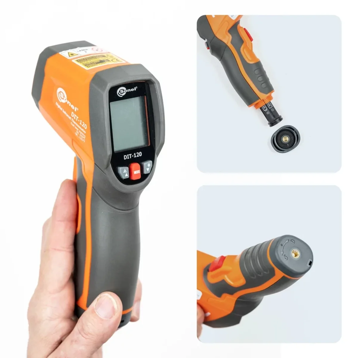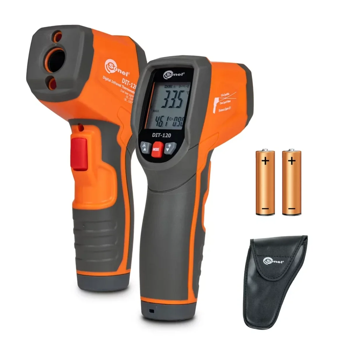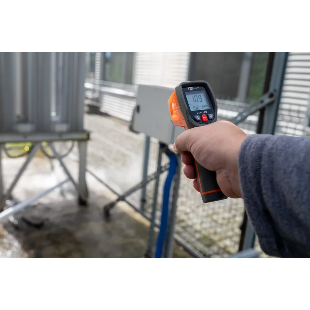 Das DIT-120 ist Pyrometer für den professionellen Einsatz. Das robuste Gehäuse, der ergonomische Griff und die mit einem Finger erreichbaren Tasten tragen zum Bedienkomfort bei. Die technischen Daten sprechen für sich. Der fortschrittliche Laserpointer zeigt den Messpunkt präzise und eindeutig an.