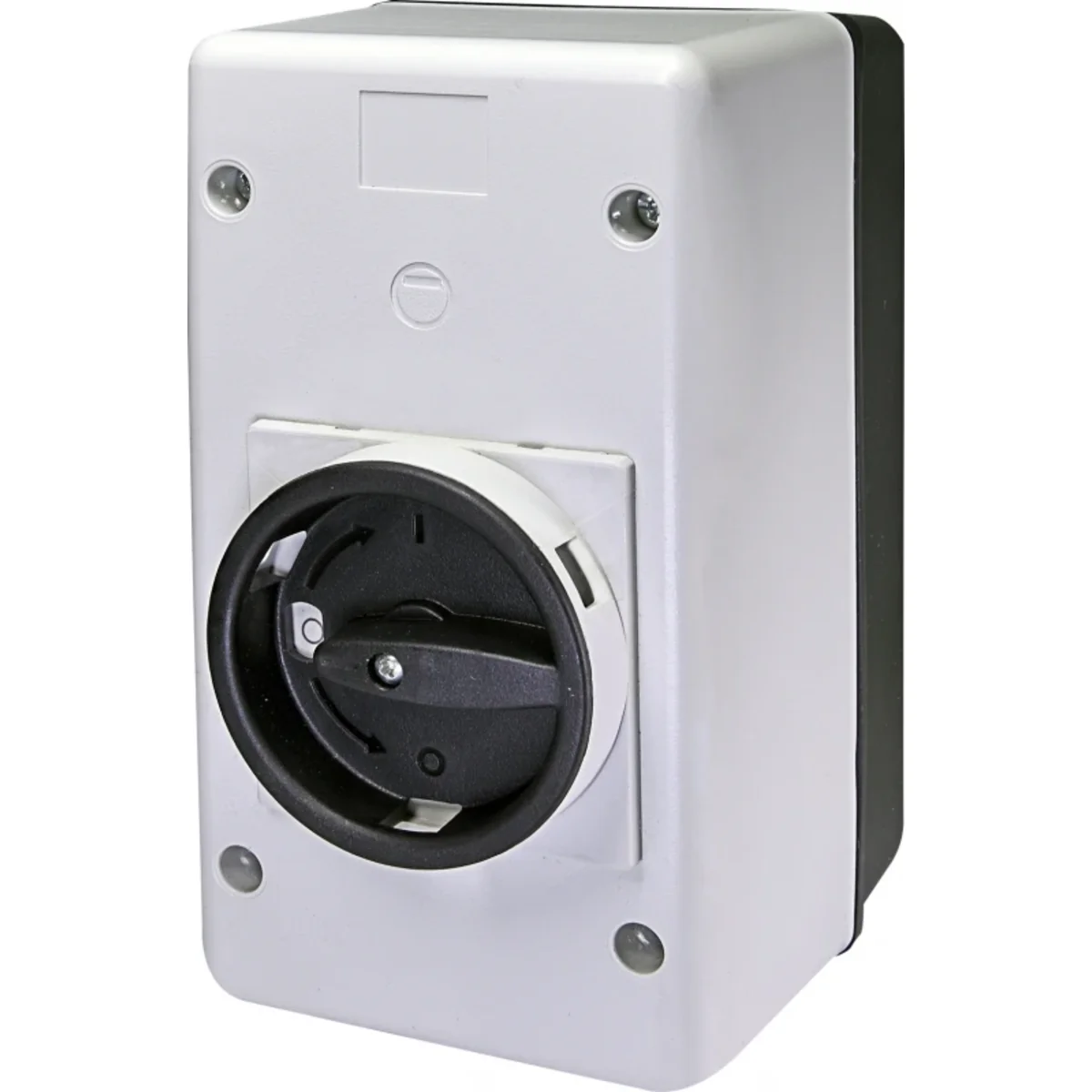 Anwendung - Isoliergehäuse mit Handradantrieb enthalten eingebaute PE- und N-Klemmen. Sie können mit drei Vorhängeschlössern gleichzeitig in der AUS-Stellung verriegelt werden. Es ist möglich, Drähte in das Gehäuse einzuführen, indem zwei geschwächte Stellen entfernt werden – oben und unten.