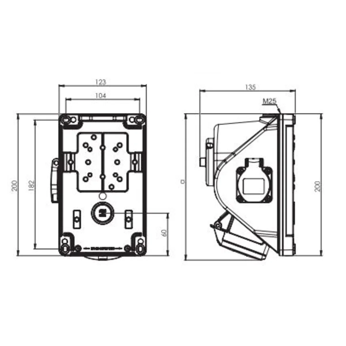 Steckdose mit Schalter „COMBO-POL“ IP44 16A 400V 3P+Z+N 230V Steckdose, mit Schalter L-O-P 960615411W