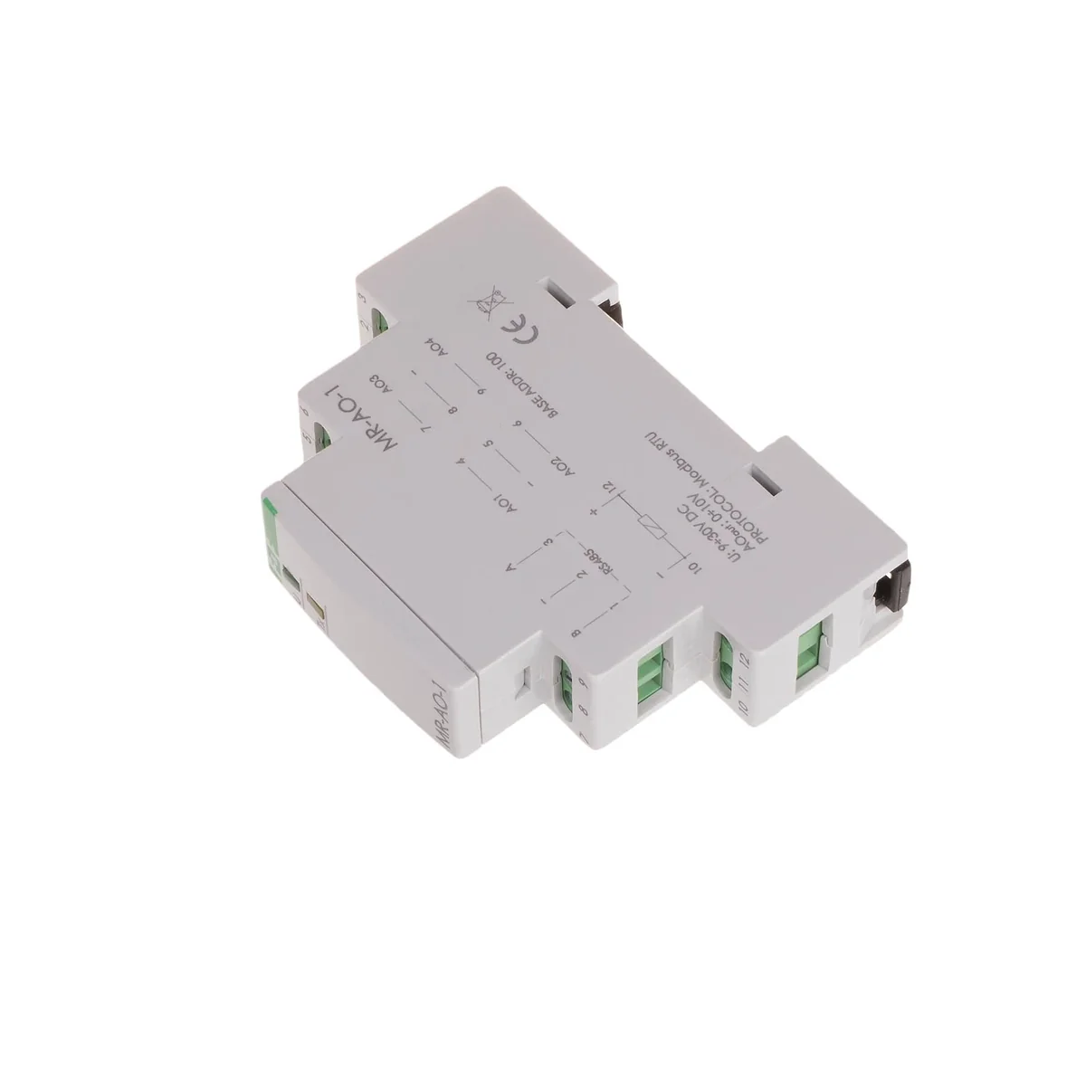 The MR-AO-1 module serves as an external device that extends the analog voltage outputs of PLC programmable controllers or other devices where data exchange takes place via the RS485 port in accordance with the MODBUS RTU protocol.