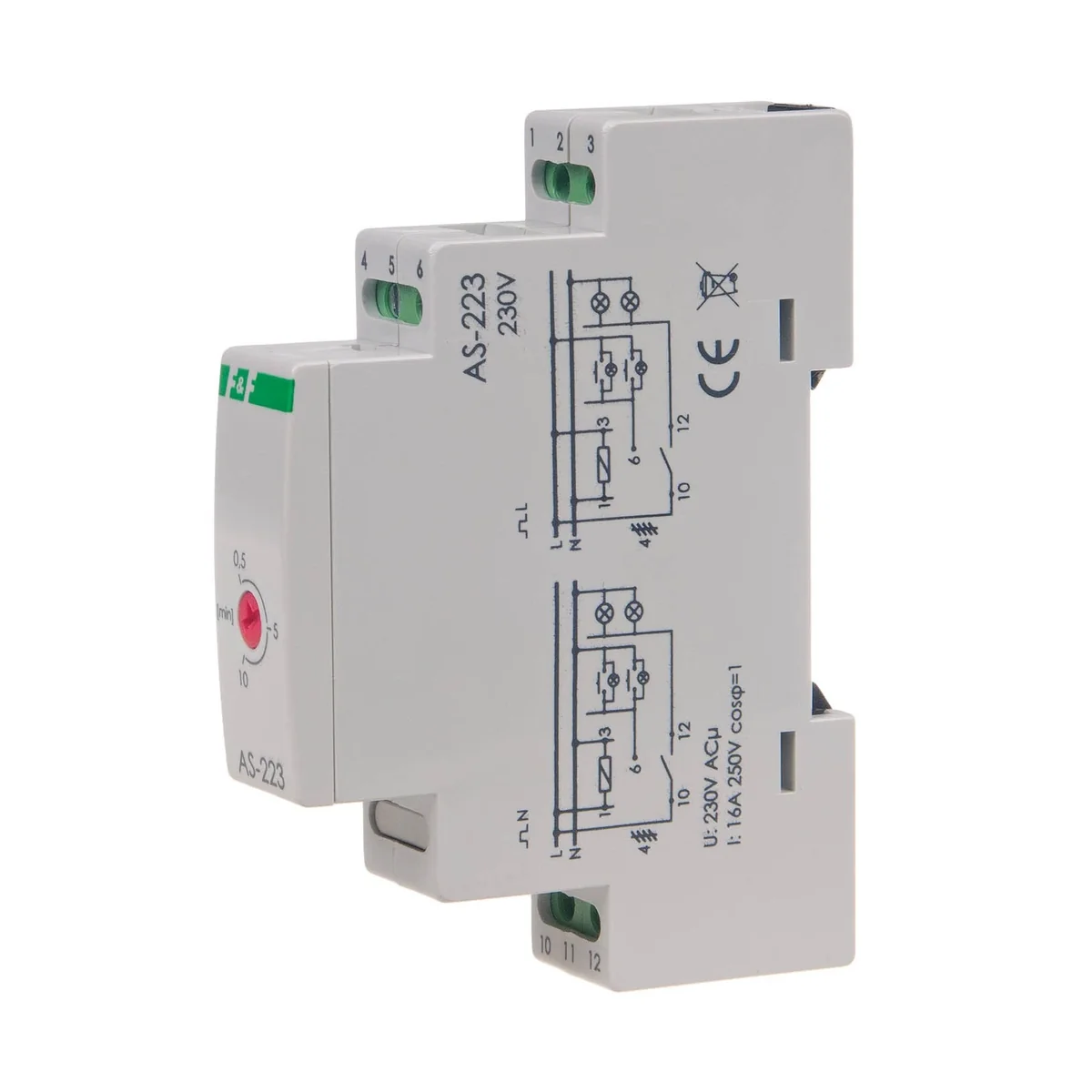 Staircase timer is used to keep the lighting of corridors, staircases, or other objects on for a specified time, after which the lighting will be turned off automatically. Operation: