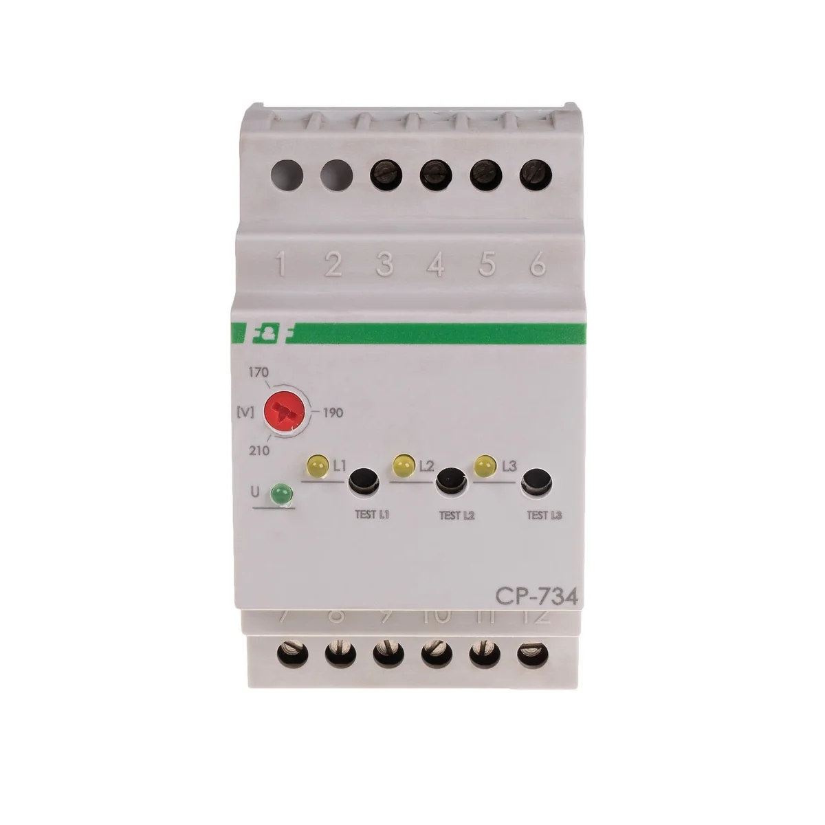 The CP-734 voltage relay is used to control the voltage of a three-phase network and protect a single-phase receiver against the effects of a voltage drop below the set value. Operation