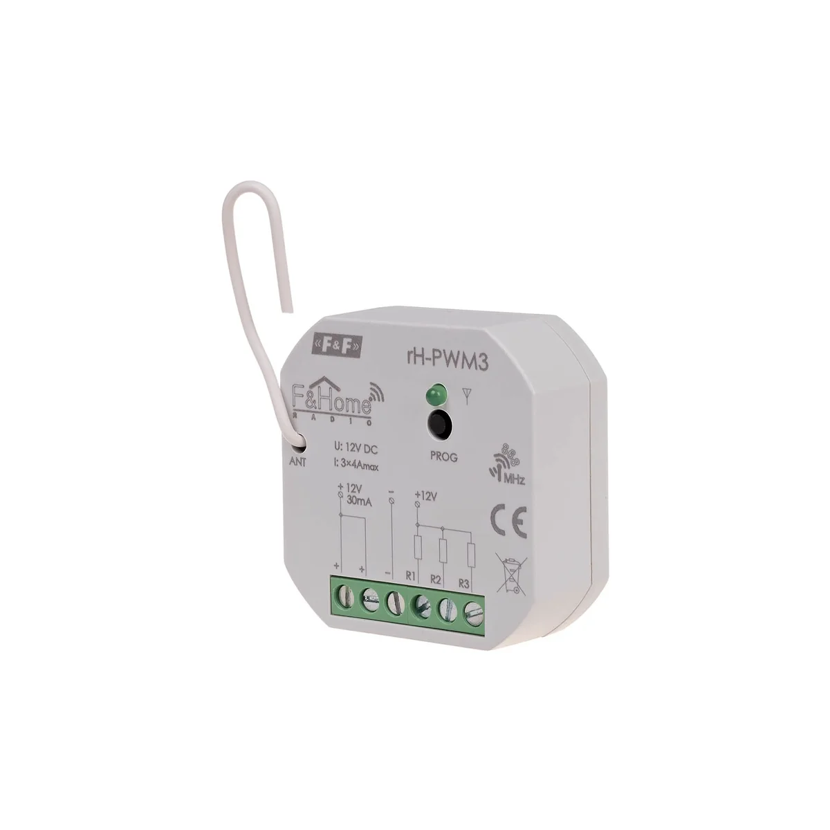 rH-PWM3 is used to control three low-voltage receivers powered from an external power supply. Power regulation is done by pulse width modulation that activates the receiver (PWM).