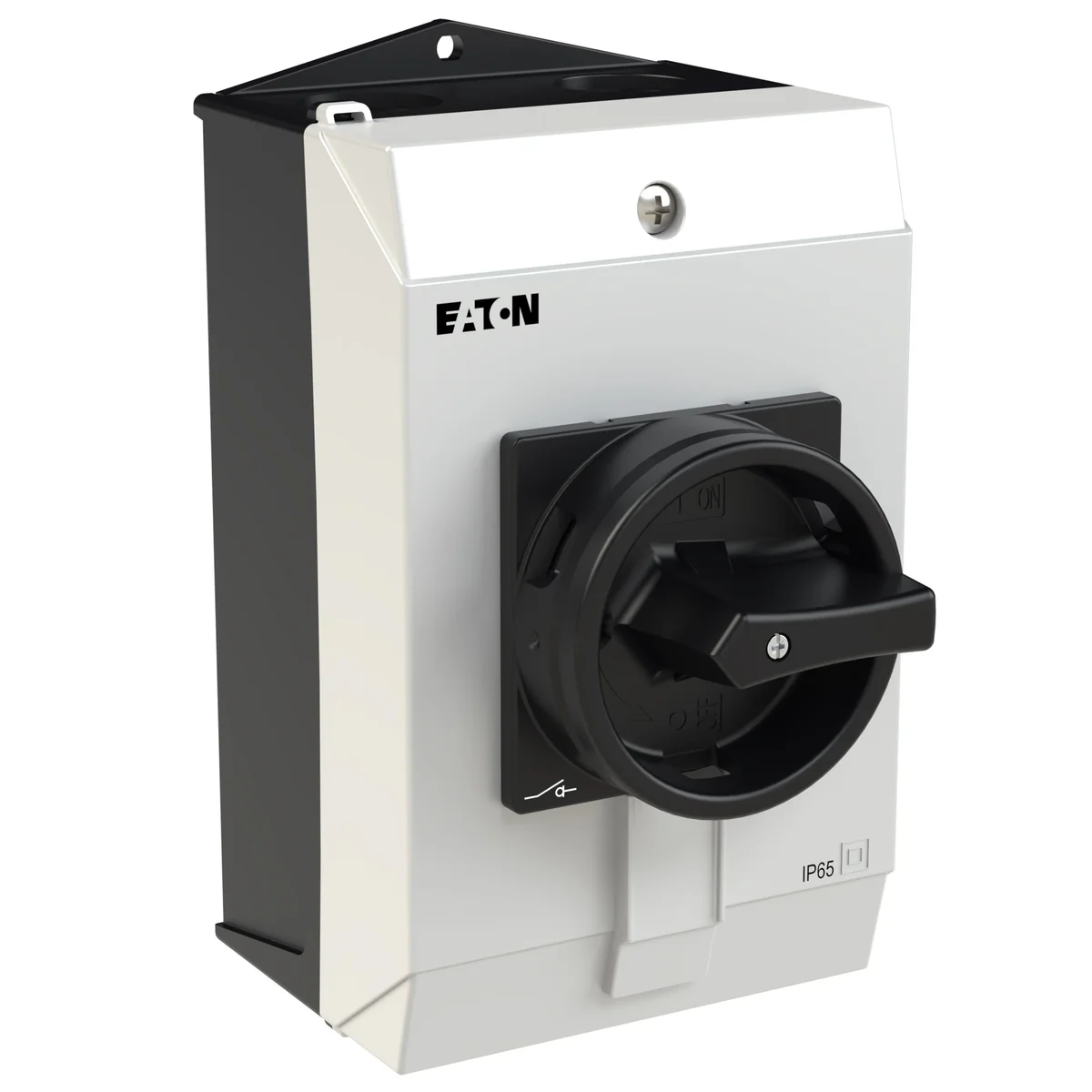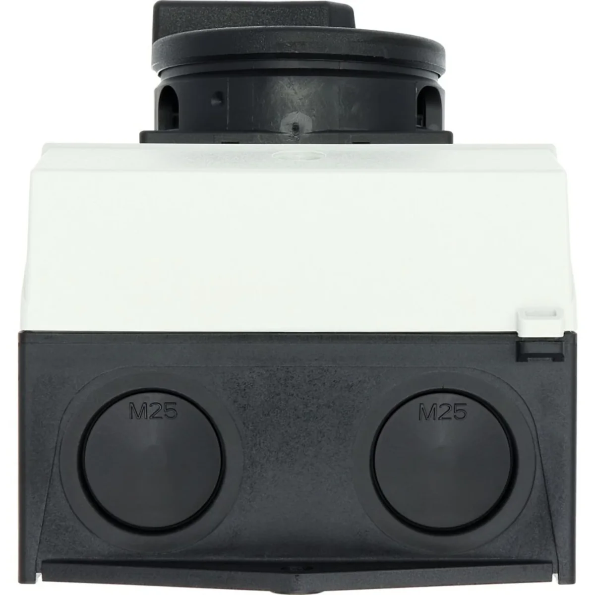 On/Off switch In=32A P=15kW. With a black padlockable knob. Lockable in position 0