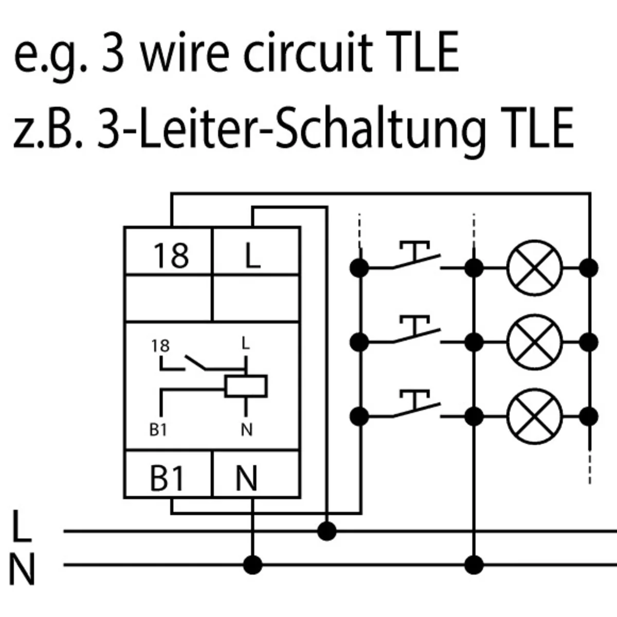 TLE type automatic staircase switch, 16A 230V 101064 has a single NO contact, voltage of 230V and control voltage frequency of 50Hz. Offers STOP function and shutdown warning.