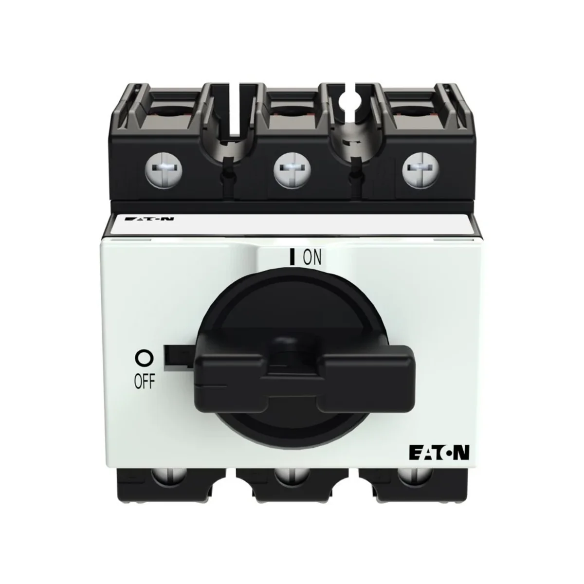 On/Off switch In=100A P=50kW. Without auxiliary circuits. With black knob and faceplate