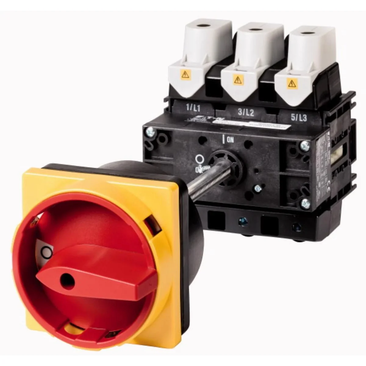 On/Off switch In=160A P=55kW. With red/yellow padlockable knob according to IEC/EN 60204-1, VDE 0113 Part 1. Lockable in 0 position