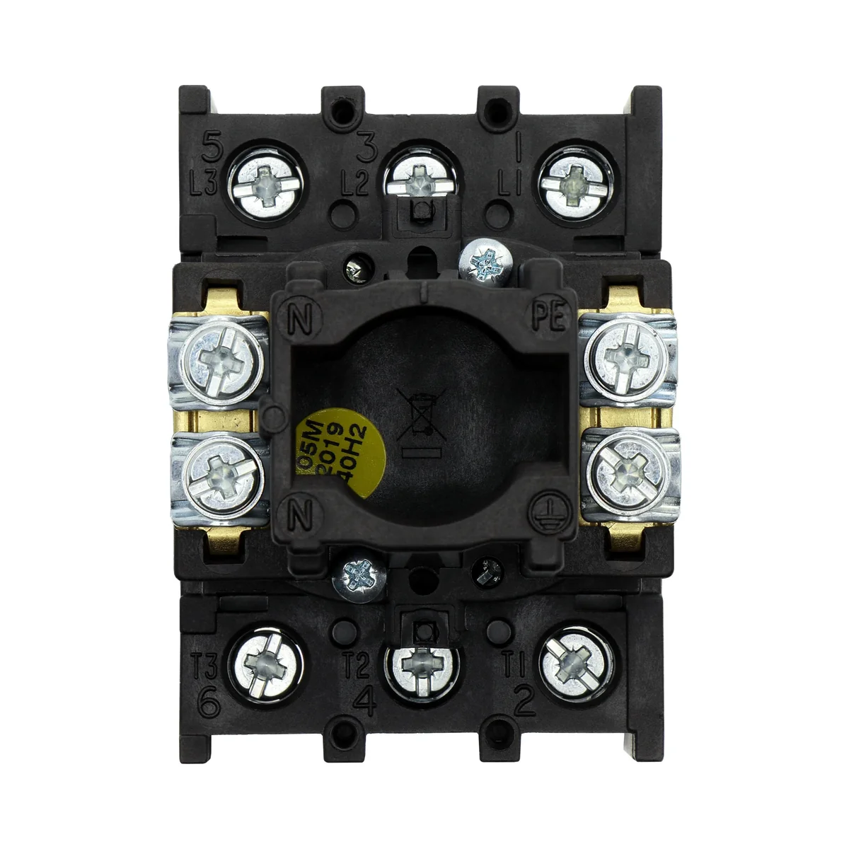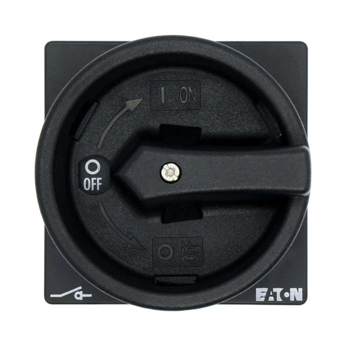 On/Off switch In=25A P=13kW. With a black padlockable knob. Lockable in position 0