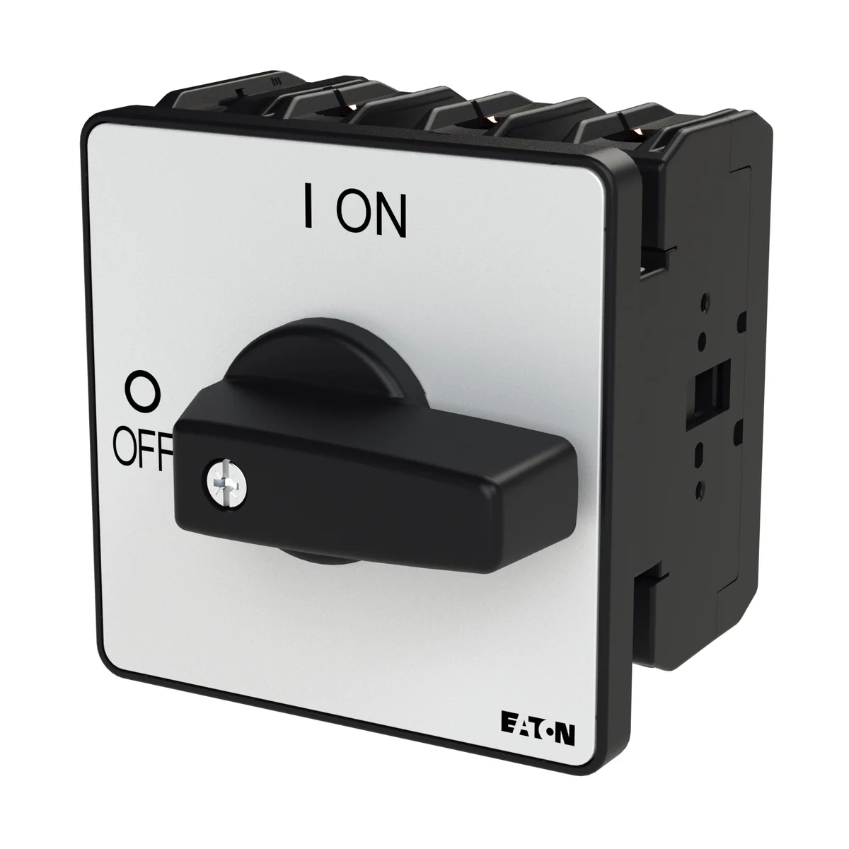 On/Off switch In=63A P=37kW. Without auxiliary circuits. With black knob and face plate