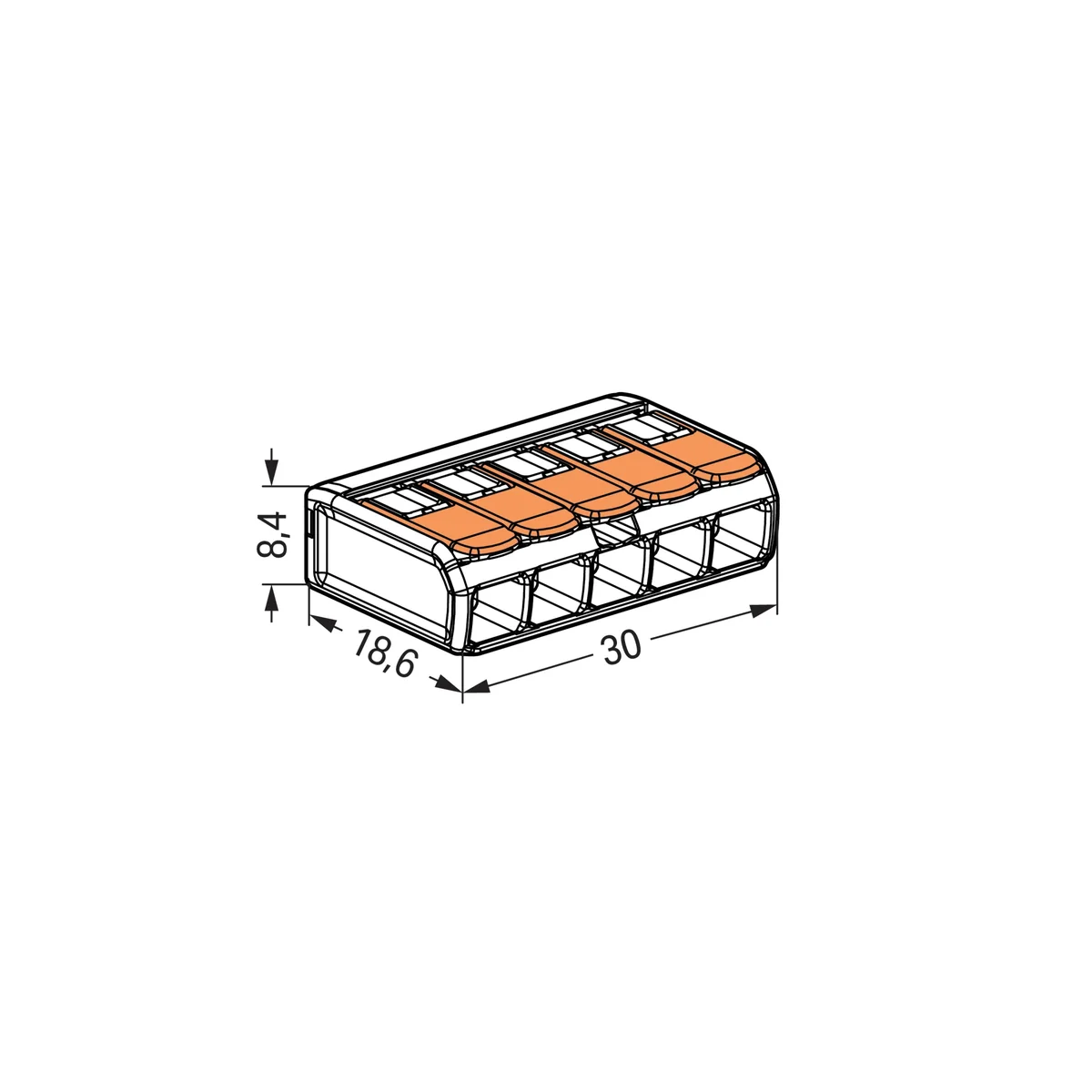 The 221 series is designed for a nominal current of 32A and a nominal voltage of 450V and therefore can be used in 230/400V networks. The transparent housing provides full control of the placement of wires.