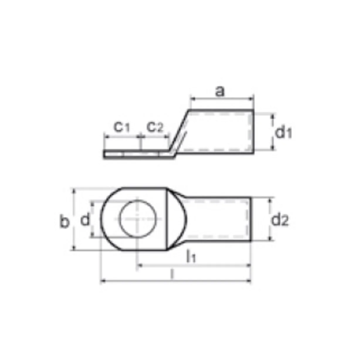 DIN series copper tubular ring terminals (galvanically tin-plated) in accordance with DIN 46235, for crimping. They enable the termination of copper cable cores, they are used where it is necessary to connect the cable to, for example, a switchgear, busbar or other device using a screw terminal. The use of DIN ring terminals increases the safety and durability of this type of connection. In contrast to soldered connections, the use of ring terminals reduces the risk of overheating of wires and insulation. In the case of crimping sector cores, they should be reformed into "round".