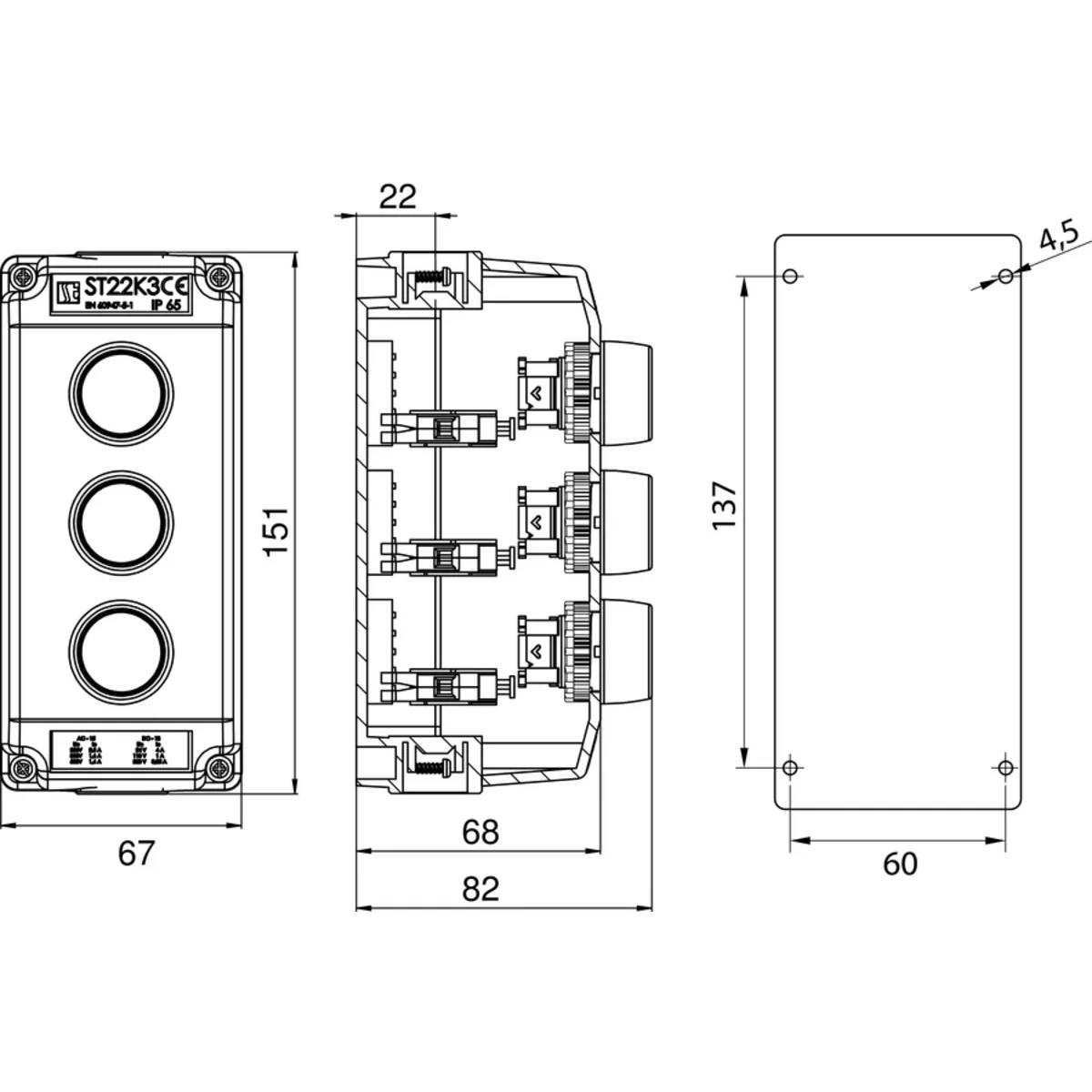3-hole control pendant with green/red/green buttons IP65 ST22K3\02-1