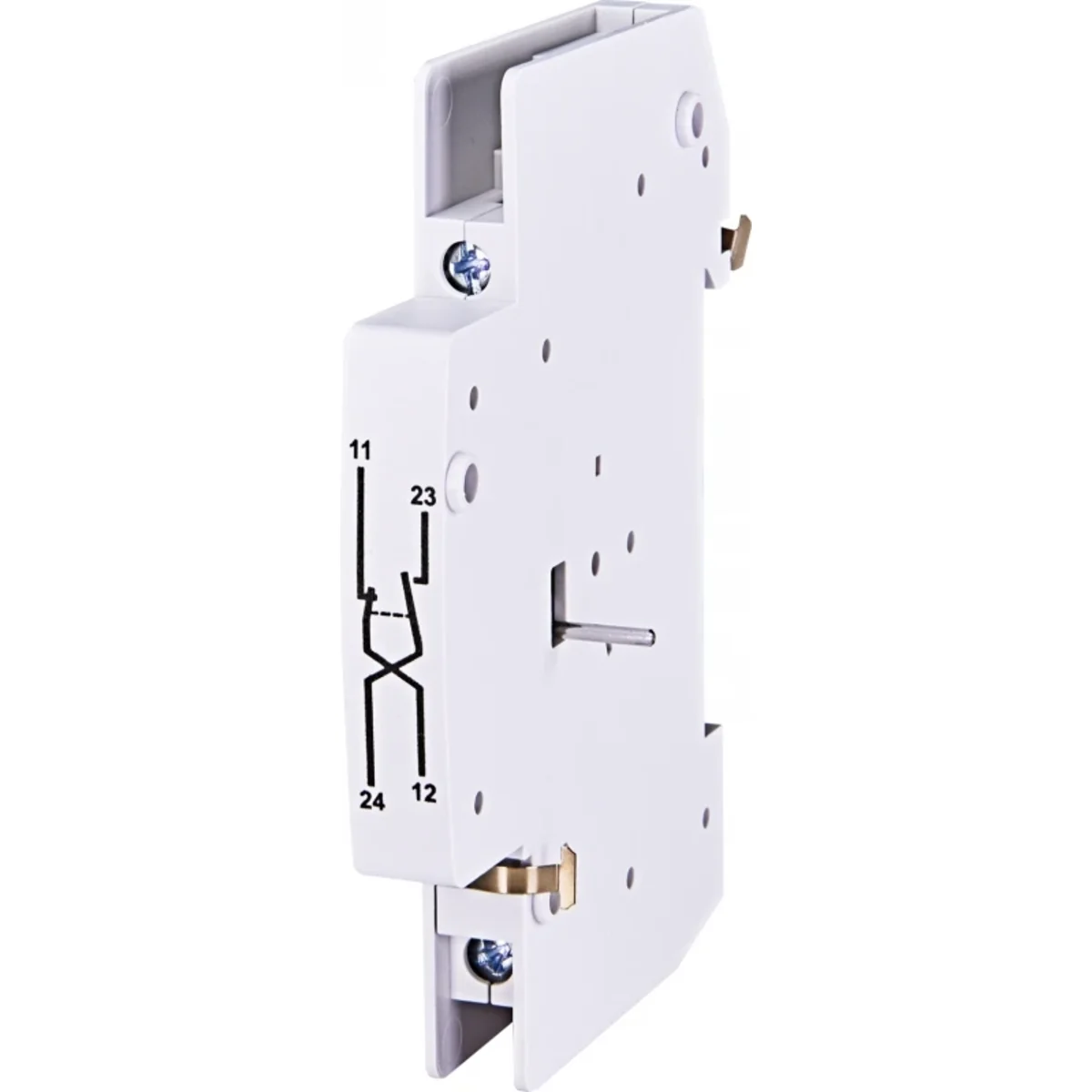 Auxiliary contacts are designed for direct cooperation with overcurrent circuit breakers. The PS ETIMAT 10 auxiliary contact works with the ETMAT 10 version of the circuit breaker. During the installation of the auxiliary contacts, the circuit breakers must be turned OFF. The external dimensions are identical to those of the circuit breaker. Auxiliary contacts do not have their own surprise. Auxiliary contacts are used for remote signaling of the circuit breaker status (on, off) or for controlling individual current circuits. The width of the PS ETIMAT 10 auxiliary contact module is 9mm. Auxiliary contact PS ETIMAT 10 Can also be used for SV switch disconnectors 16A - 40A