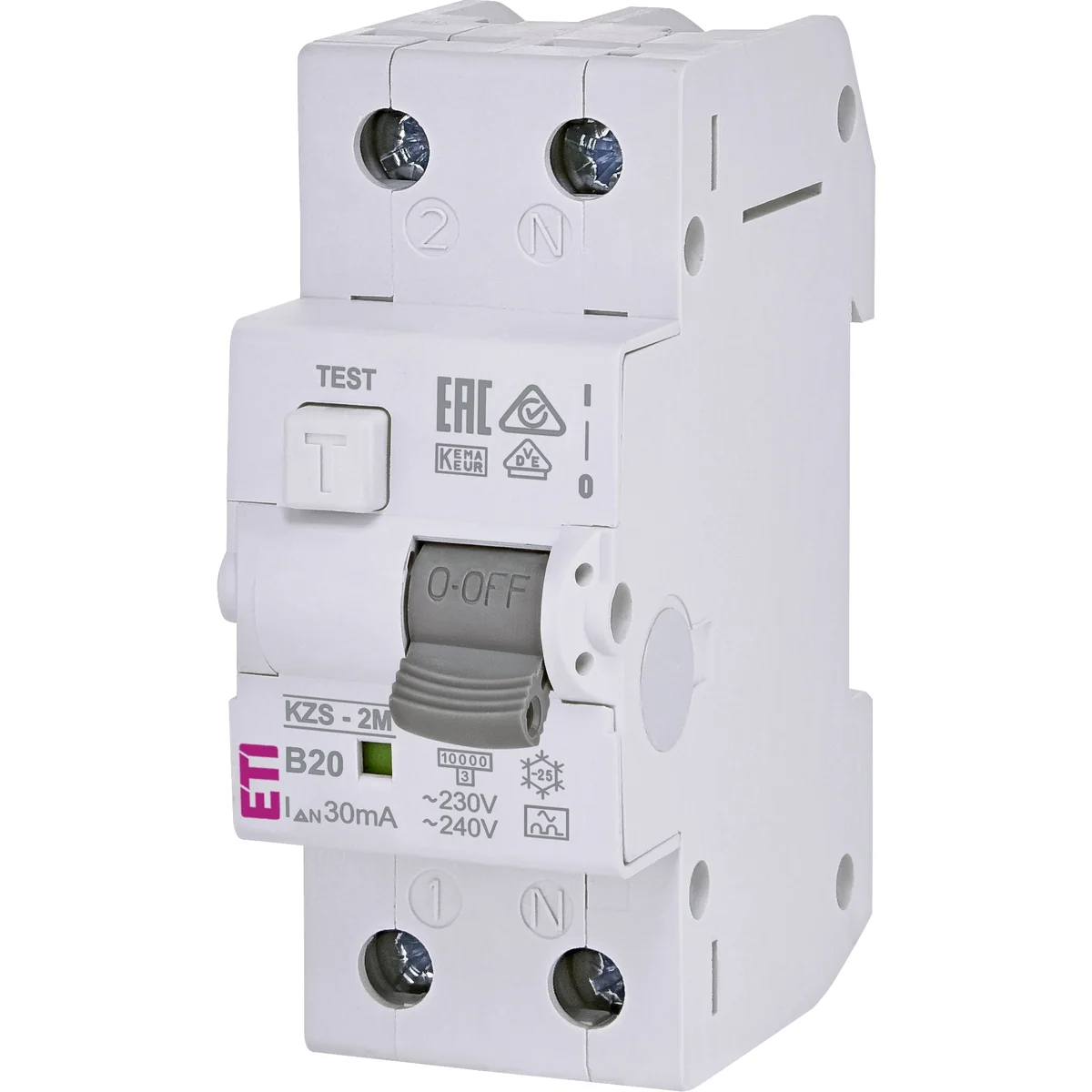 This circuit breaker is a combination of an electric shock and overcurrent circuit breaker. It is manufactured in a two-pole version, with both poles switching off each time.