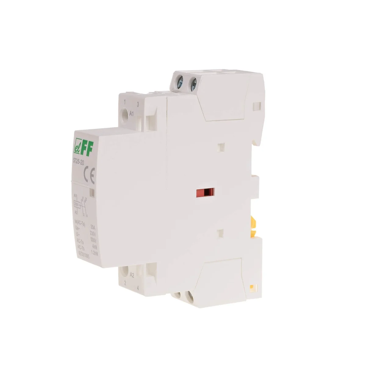 Electromagnetic contactors in modular housings for direct mounting on a 35mm rail. Applying the supply voltage to the contactor coil will cause the contact to switch. The contactor activation status is indicated by a red marker in the window. After a power failure, the contacts return to their original position.