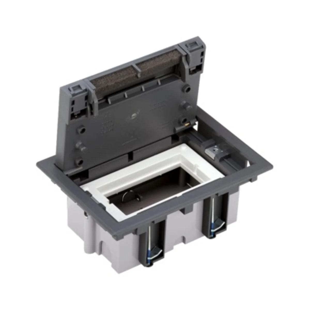 Floor boxes of the SF series are available in 5 sizes for 1, 2, 3, 4, 6 CIMA modules or similarly 2, 4, 6, 8, 12 K45 modules (45 x 45 mm) after using CIMA adapters