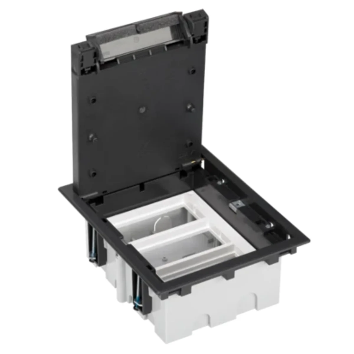 Floor boxes of the SF series are available in 5 sizes for 1, 2, 3, 4, 6 CIMA modules or similarly 2, 4, 6, 8, 12 K45 modules (45 x 45 mm) after using CIMA adapters