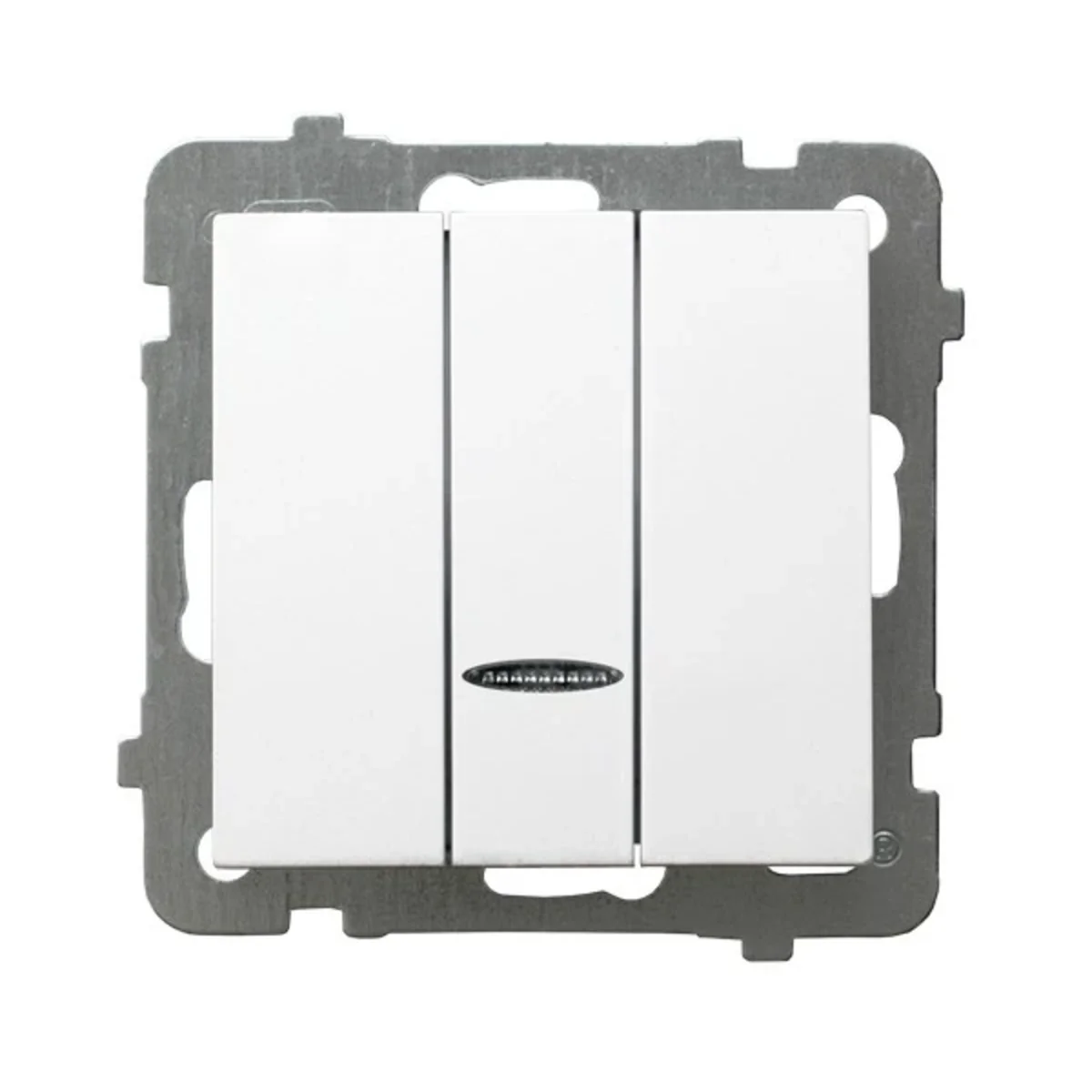 Triple illuminated switch from the As series, from Ospel. The product catalog number is ŁP-13GS/M/00.