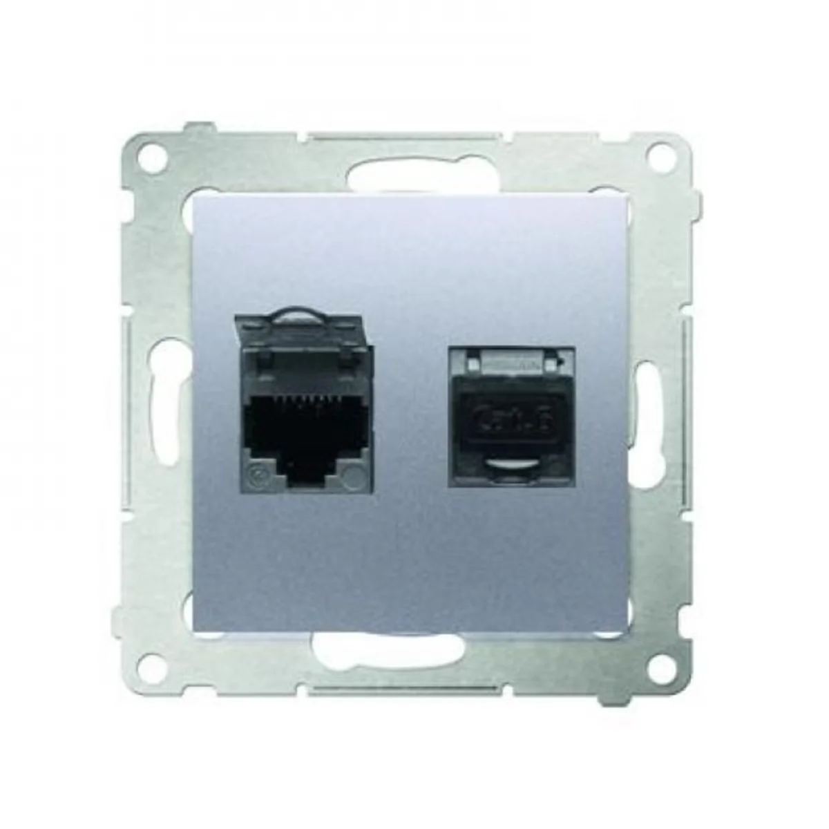 Double computer socket RJ45, category 6, with anti-dust cover, SIMON 54 series. Made of plastic. With insulation-piercing crimp.