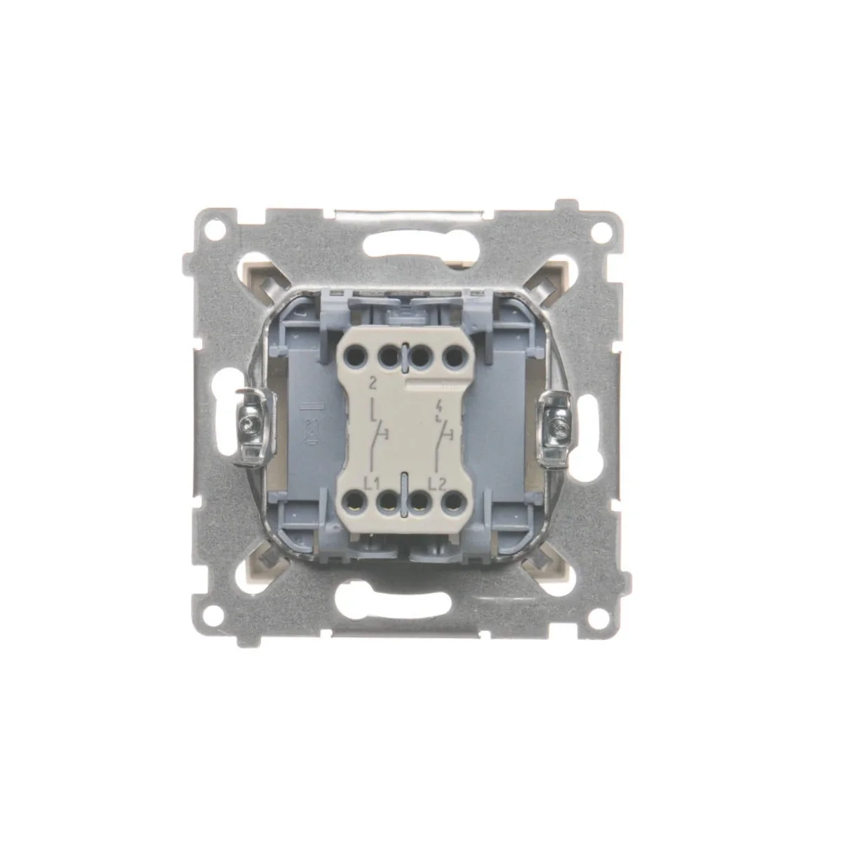 Double closing pushbutton Simon 54 series, from the manufacturer Contact Simon. The product catalog number is < strong>DP2.01/41. Cream color.