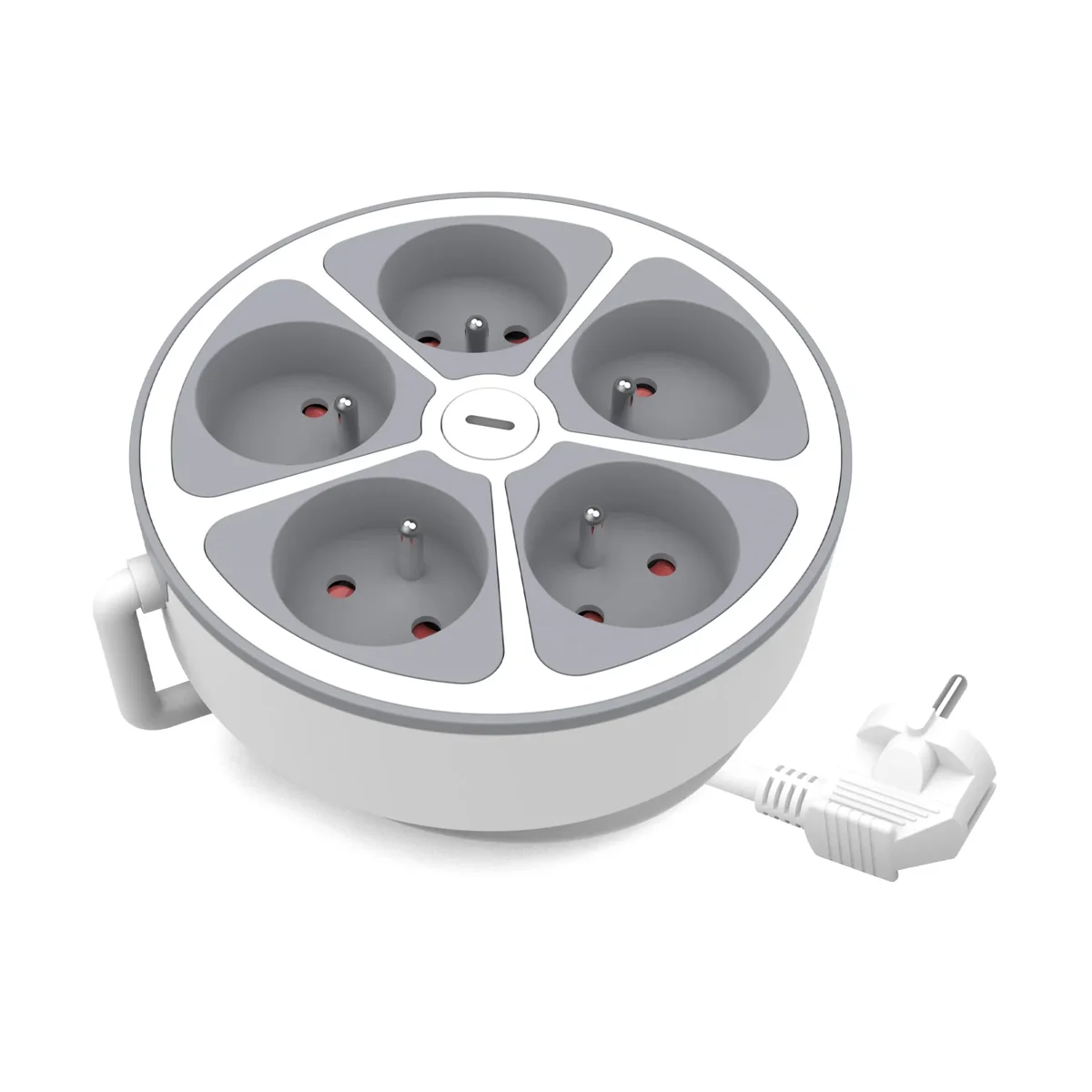 Fixed extension cord with five-way plug socket and switch 2m W-30014
