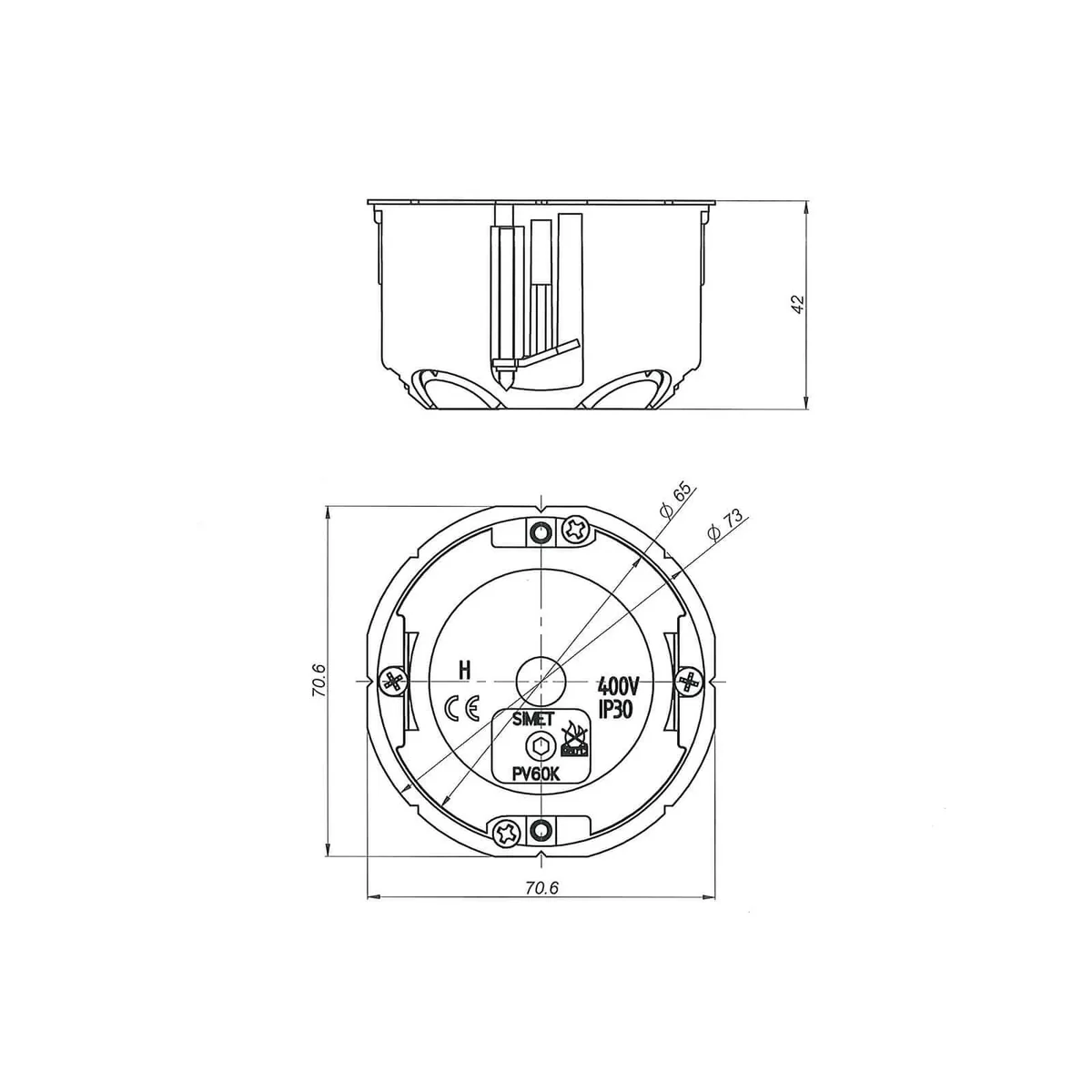 • PL60 cover (mounted inside - not protrudes above the box flange),