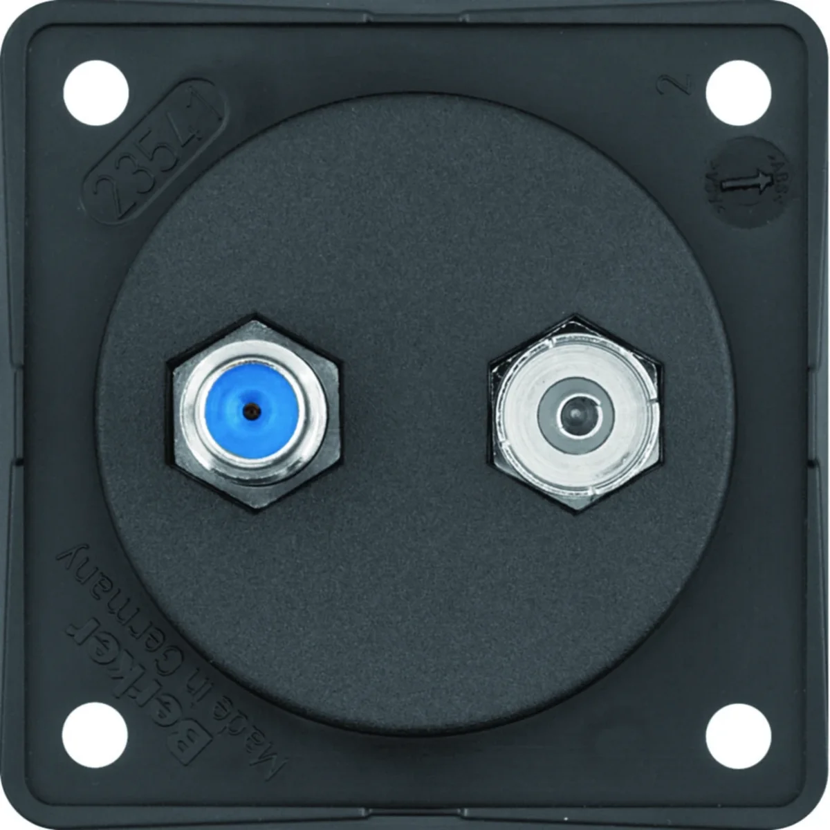 Antenna socket Radio/SAT with an unshielded housing, from the Berker Integro Flow series, which, thanks to its minimalist design, quick and easy installation, is an ideal solution for use in kitchen furniture in the sanitary industry and wherever a compact design and versatile functionality are required. It is characterized by small dimensions adapted to be installed in furniture, technical vehicles, caravans and boats. Main design line: Berker Integro modular mechanisms.