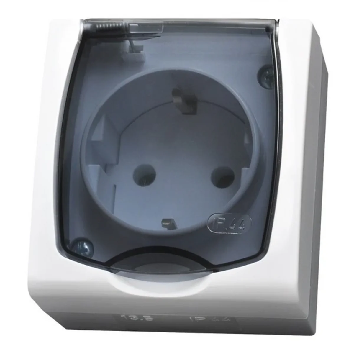 Hermetic wall-mounted electric socket from the Madera series, from the manufacturer Ospel. The product catalog number is GNH-1NS/00/D.