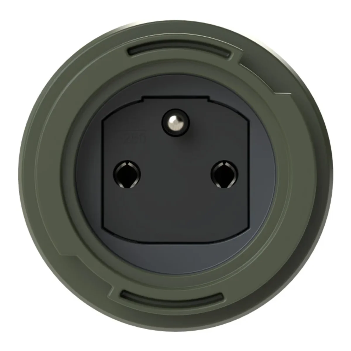 Military NAUTILUS board socket with grounding pin and flexible cover connection 16A 2P+E 230V 50/60Hz IP66/68, rear connection, flange 75x75, nickel-plated contacts 20341-8U